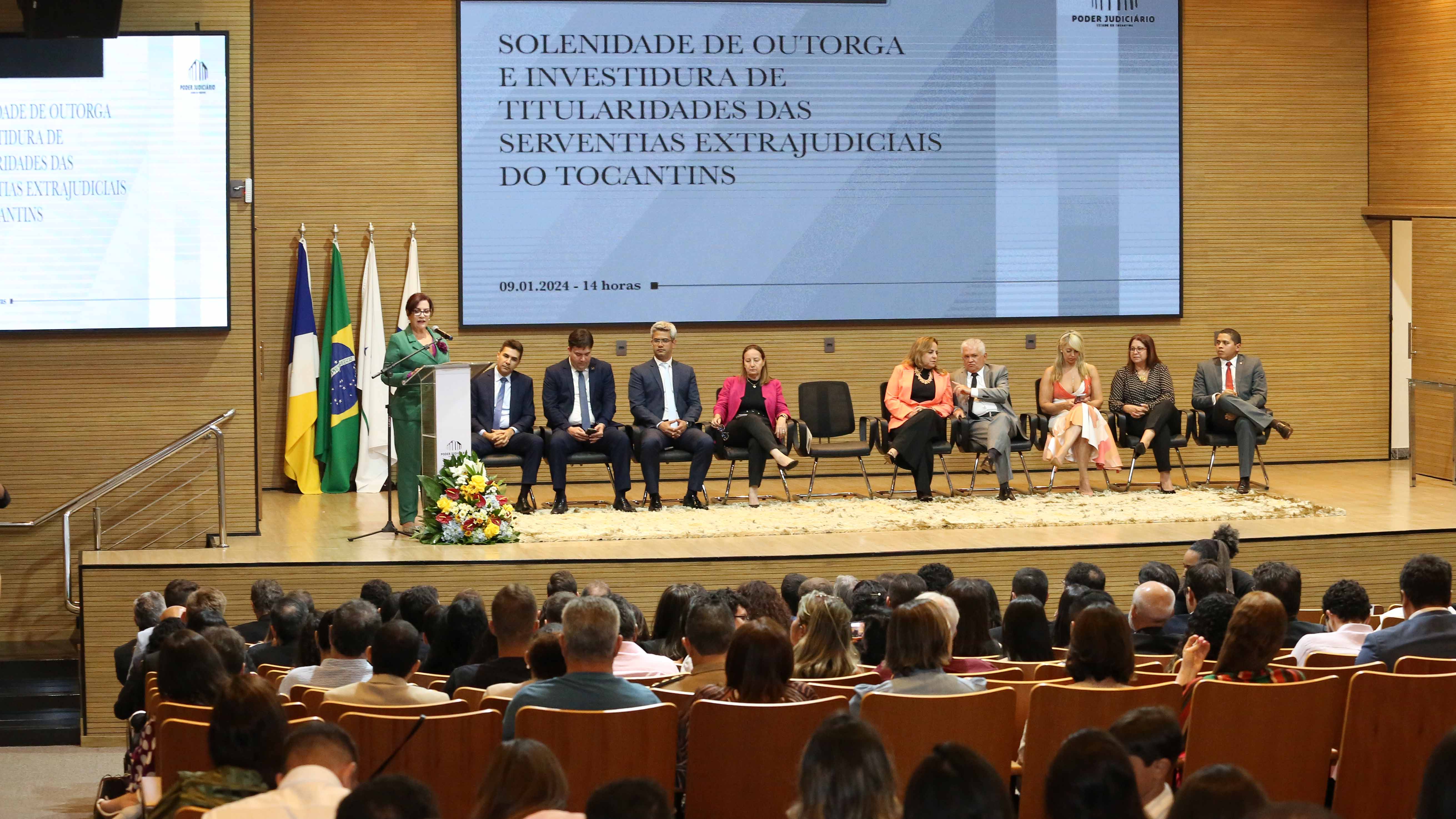 “A solenidade de investidura nos cargos de delegatários (as) é um momento significativo, marcado pela formalidade e responsabilidade”, ressaltou a corregedora-geral da Justiça do Tocantins, desembargadora Maysa Vendramini Rosal, nesta terça-feira (9/1), durante a cerimônia de ourtoga e investidura de titularidades das serventias extrajudiciais do Tocantins e posse dos novos delegatórios.