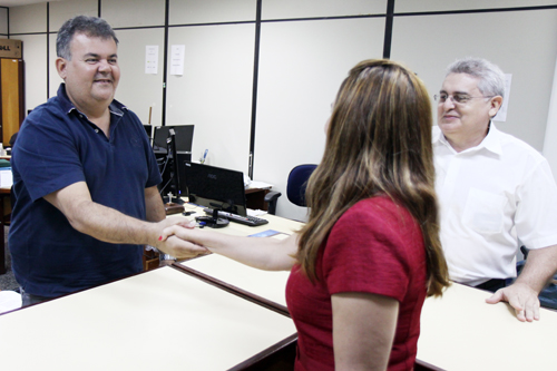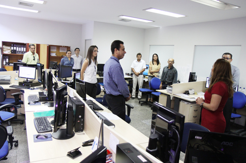 Acompanhada dos Diretores, a Presidente fez questão de ir a todos os departamentos, cumprimentar os servidores e ouví-los.
