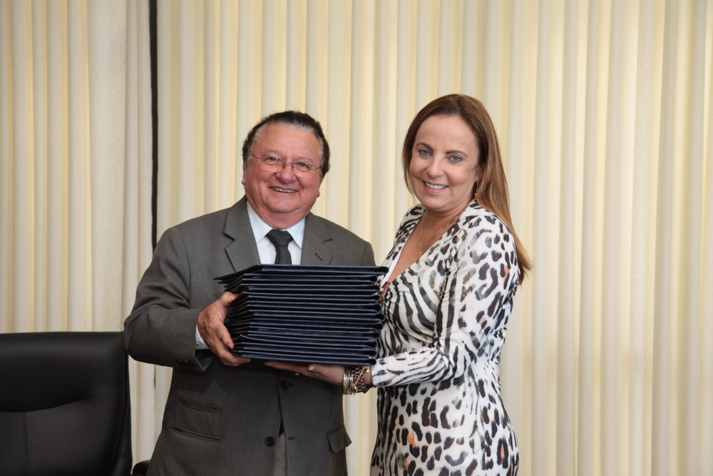 A presidente do Tribunal de Justiça do Tocantins, desembargadora Ângela Prudente, foi agraciada pelo governador do Tocantins José Wilson Siqueira Campos com a Insígnia Girassóis do Tocantins. A homenagem foi entregue a desembargadora na tarde desta terça-feira (22/4), pelo secretário-chefe da Casa Civil, Renan de Melo. Também foram agraciados os presidentes dos Tribunais de Justiça dos estados, seus representantes e Comissão Executiva do Colégio Permanente de Presidentes de Tribunais de Justiça do Brasil, que participaram do 98º Encontro do Colégio Permanente de Presidentes.