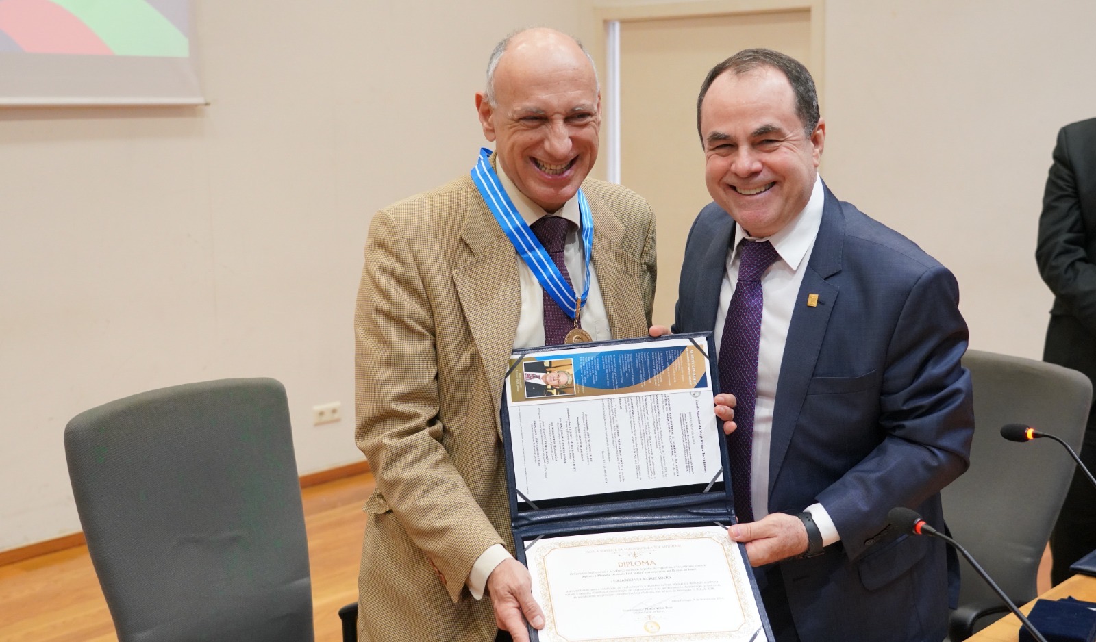 Na entrega da Medalha Antonio Rulli Junior, o desembargador Marco Villas Boas, diretor geral da Esmat, reforçou a parceria com a Universidade de Lisboa, pelo intercâmbio acadêmico, como também o apoio recebido pelo seu diretor, professor Vera-Cruz. “Quero dizer que todas as vezes que vimos à Universidade somos muito bem-recebidos, já é a terceira vez que trazemos este Congresso Internacional para, em parceria, realizar e melhorar cada dia mais o ensino jurídico no âmbito das instituições brasileiras, principalmente na magistratura.
