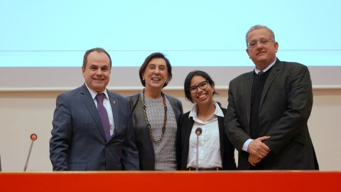 Também na ocasião, o desembargador Marco Villas Boas, diretor geral da Esmat, entregou ao professor doutor Eduardo Vera-Cruz Pinto, diretor da Faculdade de Direito da Universidade de Lisboa, a Medalha “Desembargador Antonio Rulli Junior”, comemorativa aos 15 anos da Escola Superior da Magistratura Tocantinense (Esmat), como também o Medalhão Esmat para a doutoranda em Direito, Maria Mariana Moura, coordenadora local desta edição do Congresso.
