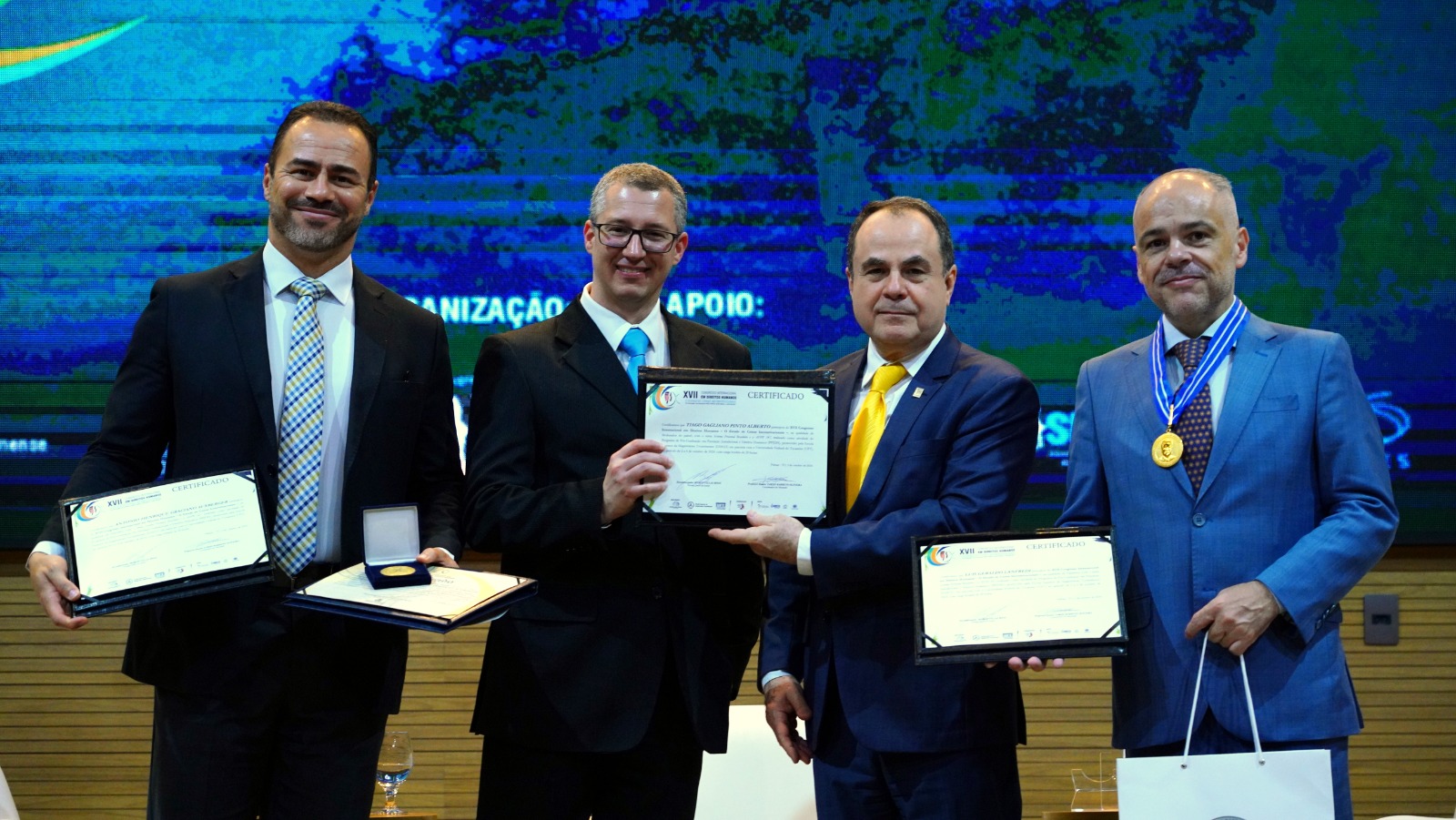 Ao final das apresentações, os palestrantes foram homenageados em reconhecimento às suas contribuições para o aprimoramento do sistema de justiça. O desembargador Luís Geraldo Lanfredi recebeu a medalha “Antonio Rulli Junior”, comemorativa aos 15 anos da Esmat, concedida àqueles que colaboraram com o aperfeiçoamento do Poder Judiciário no Tocantins e no Brasil. A homenagem foi entregue pelo desembargador Marco Villas Boas, diretor-geral da Escola. Em seguida, o doutor Antônio Henrique Graciano Suxberger também foi agraciado com o medalhão da ESMAT, em reconhecimento à sua colaboração com as atividades da escola e o fortalecimento do Judiciário no Tocantins.