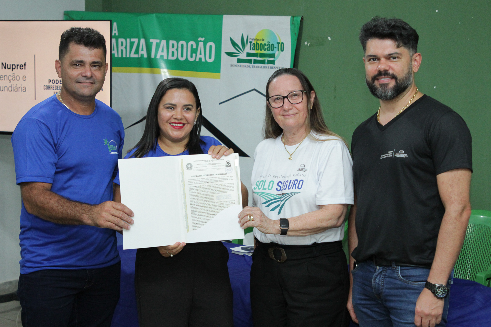 A Corregedoria-Geral da Justiça do Tocantins (CGJUS) entregou, nesta quarta-feira (11/12), 268 títulos de propriedade da regularização fundiária nos municípios de Piraquê, Bandeirantes e Tabocão. A promoção da governança de terras no estado é resultado do trabalho desenvolvido pelo Núcleo de Prevenção e Regularização Fundiária (Nupref/CGJUS), que desde 2018 atua em parceria com os municípios, cartórios de Registro de Imóveis e governos estadual e federal.