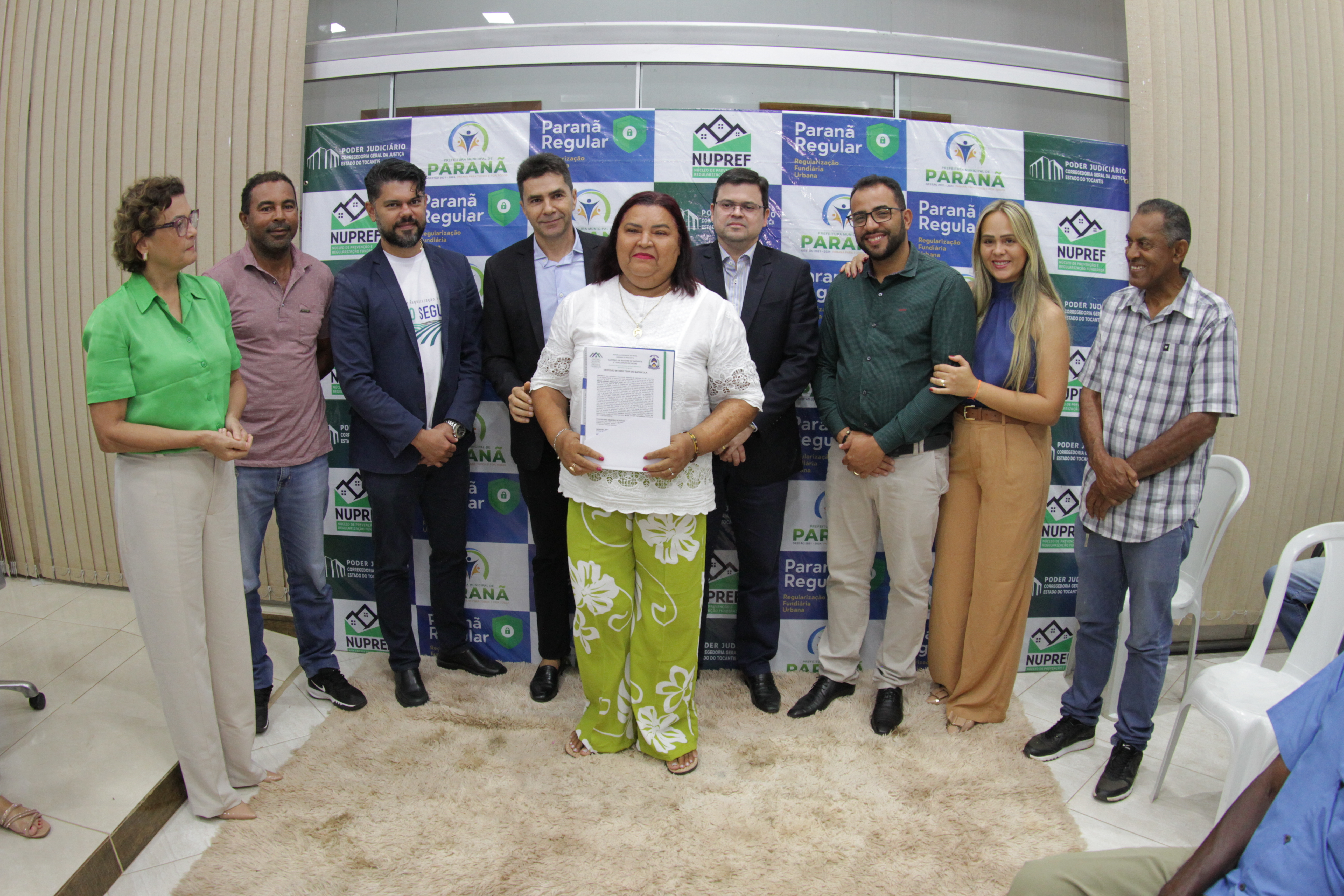 A 3ª entrega das Certidões de Inteiro Teor de Paranã aconteceu via parceria da Prefeitura Municipal e Poder Judiciário do Tocantins (PJTO). A ação é possível graças ao trabalho desenvolvido pelo Núcleo de Prevenção e Regularização Fundiária (Nupref), setor vinculado à Corregedoria-geral da Justiça (CGJUS), e conta também com o apoio do cartório de Registro de Imóveis da cidade e da Companhia Imobiliária de Participações, Investimentos e Parcerias (Tocantins Parcerias).