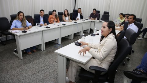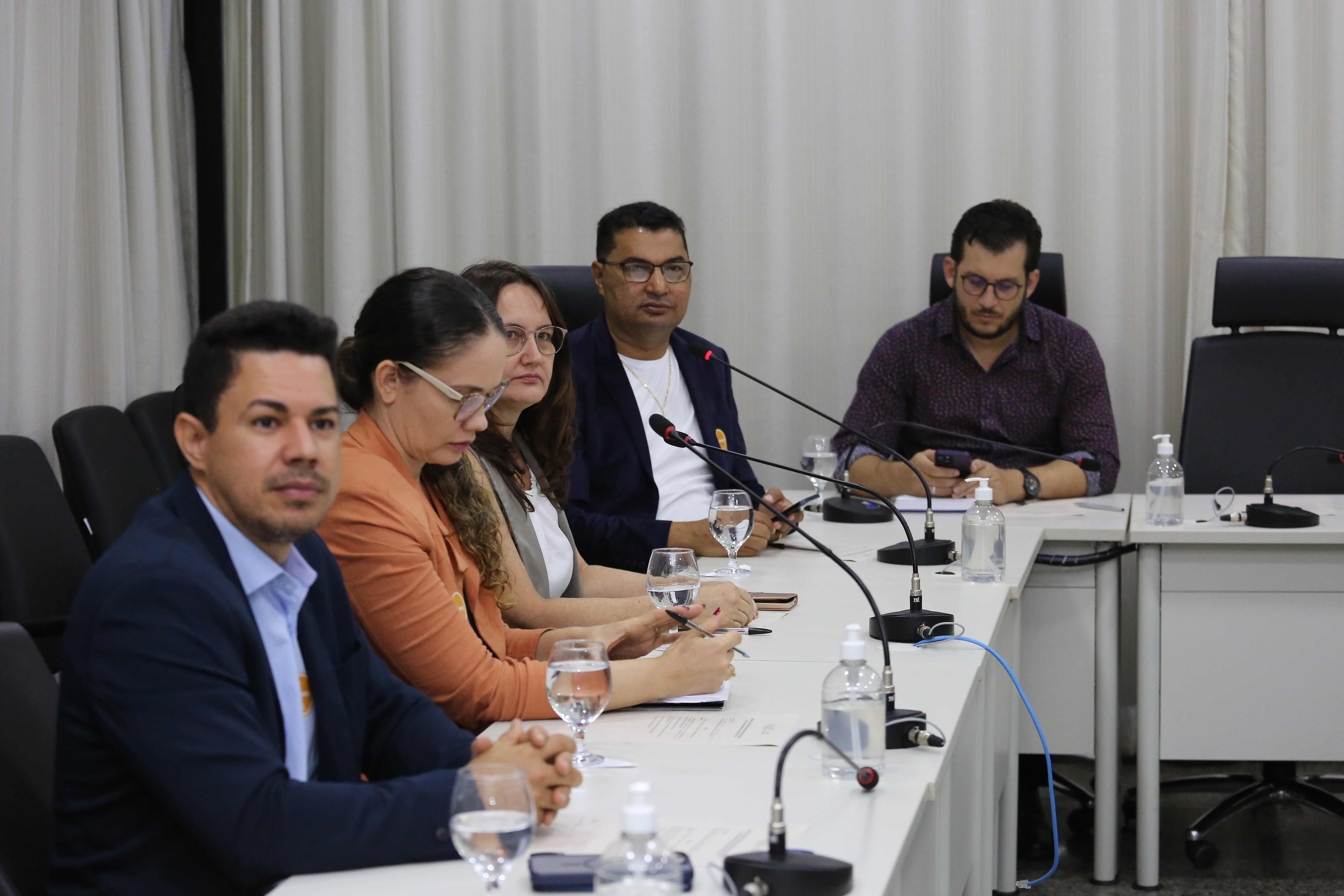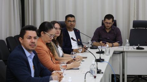 Elias Oliveira/Cecom-TJTO Imagem mostra pessoas sentadas em volta da mesa do Cinugep durante reunião do Ceimpa/TJO