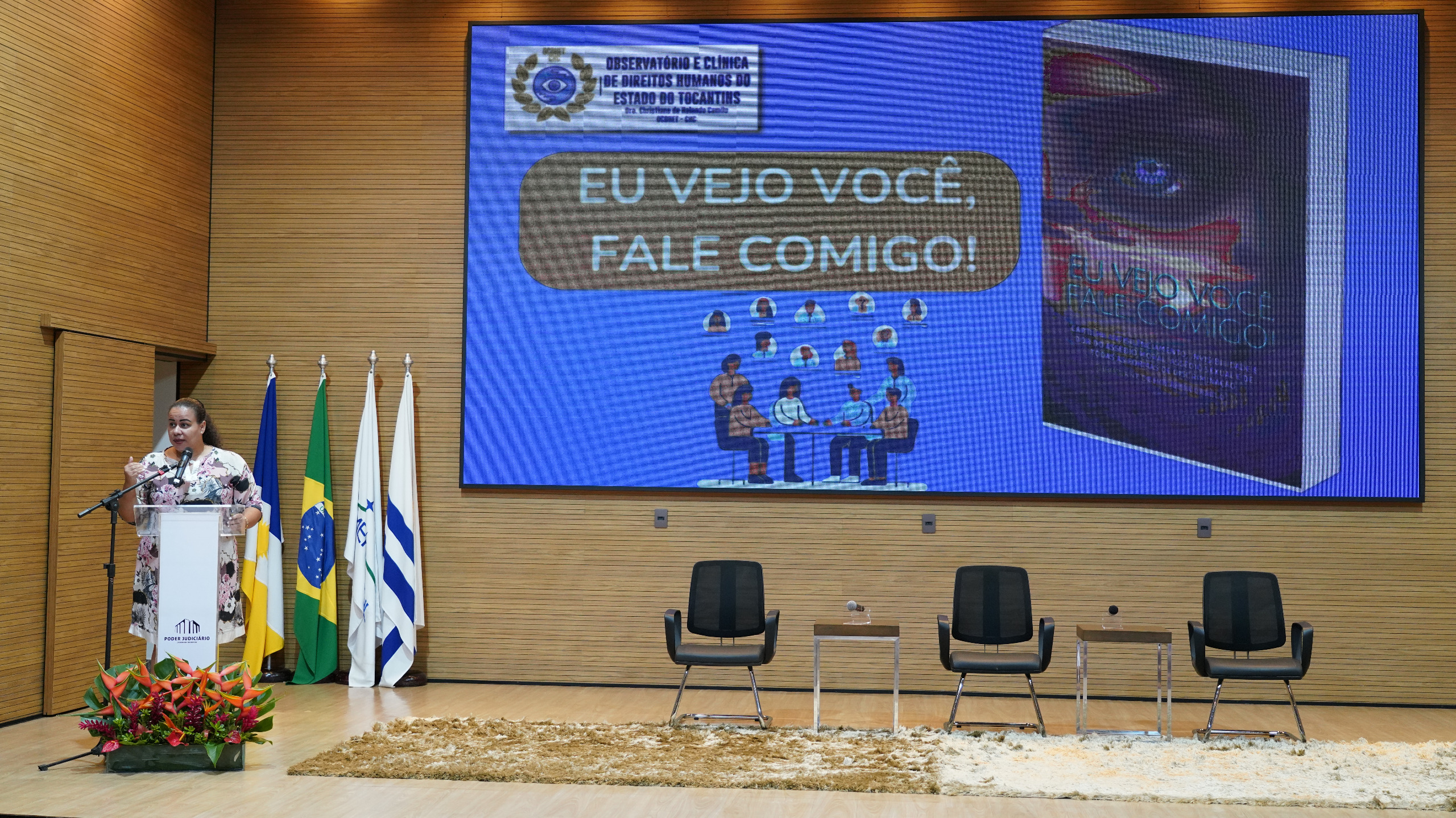 Além das palestras, a programação contou com a participação especial do Observatório e Clínica de Direitos Humanos do Estado do Tocantins, com a apresentação do manual “Eu vejo você, fale comigo!” pela doutora Christiane de Holanda Camilo (OCDHET-CHC). Em sua fala, destacou a forma de construção do manual, que foi a partir da interação do público, e questionou o olhar sobre a vida, o trabalho e principalmente sobre as relações de poder.