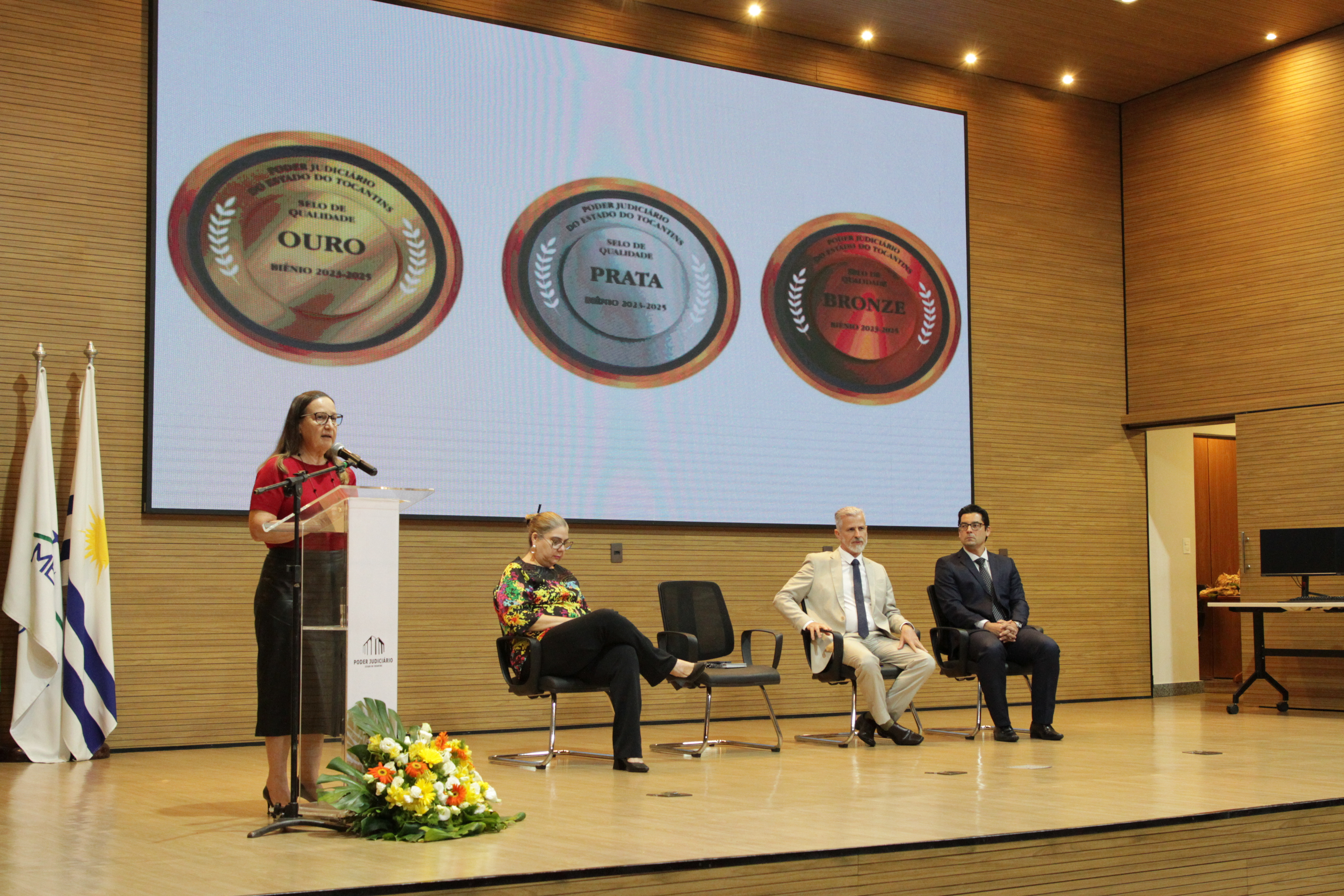 "É uma grande honra receber o Selo Qualidade. Trabalhamos muito para isso, buscando sempre oferecer um serviço de qualidade, e hoje estamos colhendo os frutos desse esforço. São 30 anos de trabalho na serventia, comecei em Aurora do Tocantins, agora sou oficiala do cartório de Combinado”, disse a delegatária Josilda de Souza Tavares ao ser premiada na categoria ouro do Selo de Qualidade da Corregedoria Geral da Justiça do Tocantins nesta sexta-feira (06/12).