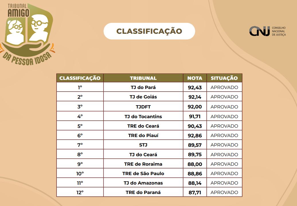 Durante a solenidade de outorga do selo, 25 tribunais de diversos segmentos da Justiça. em todo os graus de jurisdição, foram premiados. No topo do ranking, os mais bem avaliados foram os tribunais de Justiça do Pará, Goiás, Distrito Federal e Territórios e Tocantins. O TJTO ficou em 4º lugar, com a nota 91,71.