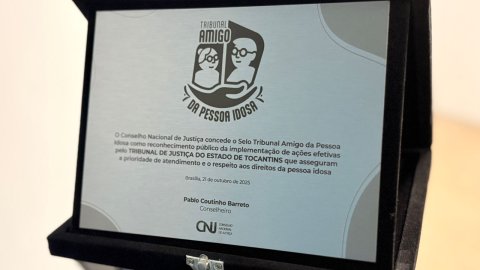 O Conselho Nacional de Justiça (CNJ) concedeu ao Tribunal de Justiça do Tocantins (TJTO), nesta terça-feira (21/10), o Selo “Tribunal Amigo da Pessoa Idosa”. O judiciário tocantinense ficou em quarto lugar no ranking de ações e boas práticas adotadas pelos tribunais na promoção do envelhecimento digno, acessível e respeitoso às pessoas idosas nos últimos dois anos.
