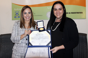 Durante o evento, a Presidente do TJTO, desembargadora Jacqueline Adorno foi homenageada com o Medalhão da Escola Superior da Magistratura pelos serviços prestados à escola e o aprimoramento do ensino jurídico no Tocantins.