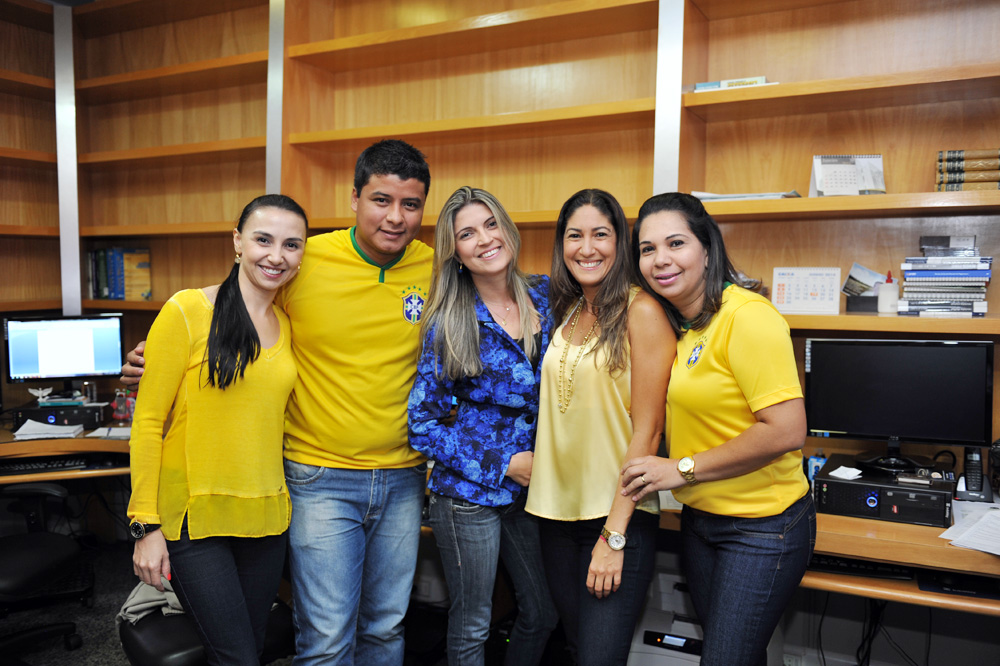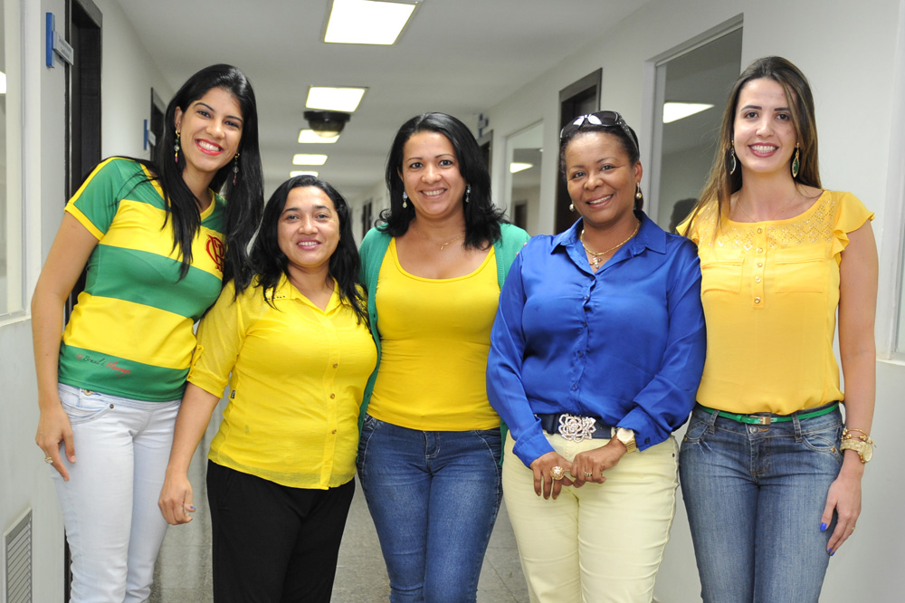 Não foi nada combinado, mas muitos servidores vieram trabalhar vestidos com as cores da bandeira brasileira, nesta quinta-feira (12/6), dia da abertura da Copa do Mundo e estreia do Brasil, que enfrentou a Croácia. As mulheres capricharam no visual, usando além das roupas, acessórios e esmaltes nas unhas nas cores da seleção canarinha. Em alguns departamentos, como a Diretoria de Gestão de Pessoas, os servidores fizeram camisas personalizadas para torcer pelo Brasil com muito estilo e animação. Vejam alguns registros do clima da Copa, que tomou conta do Tribunal de Justiça do Tocantins, anexos e comarcas. Você pode conferir também na página oficial do TJTO no Facebook https://www.facebook.com/media/set/?set=a.556437514467511.1073741827.278298195614779&type=1