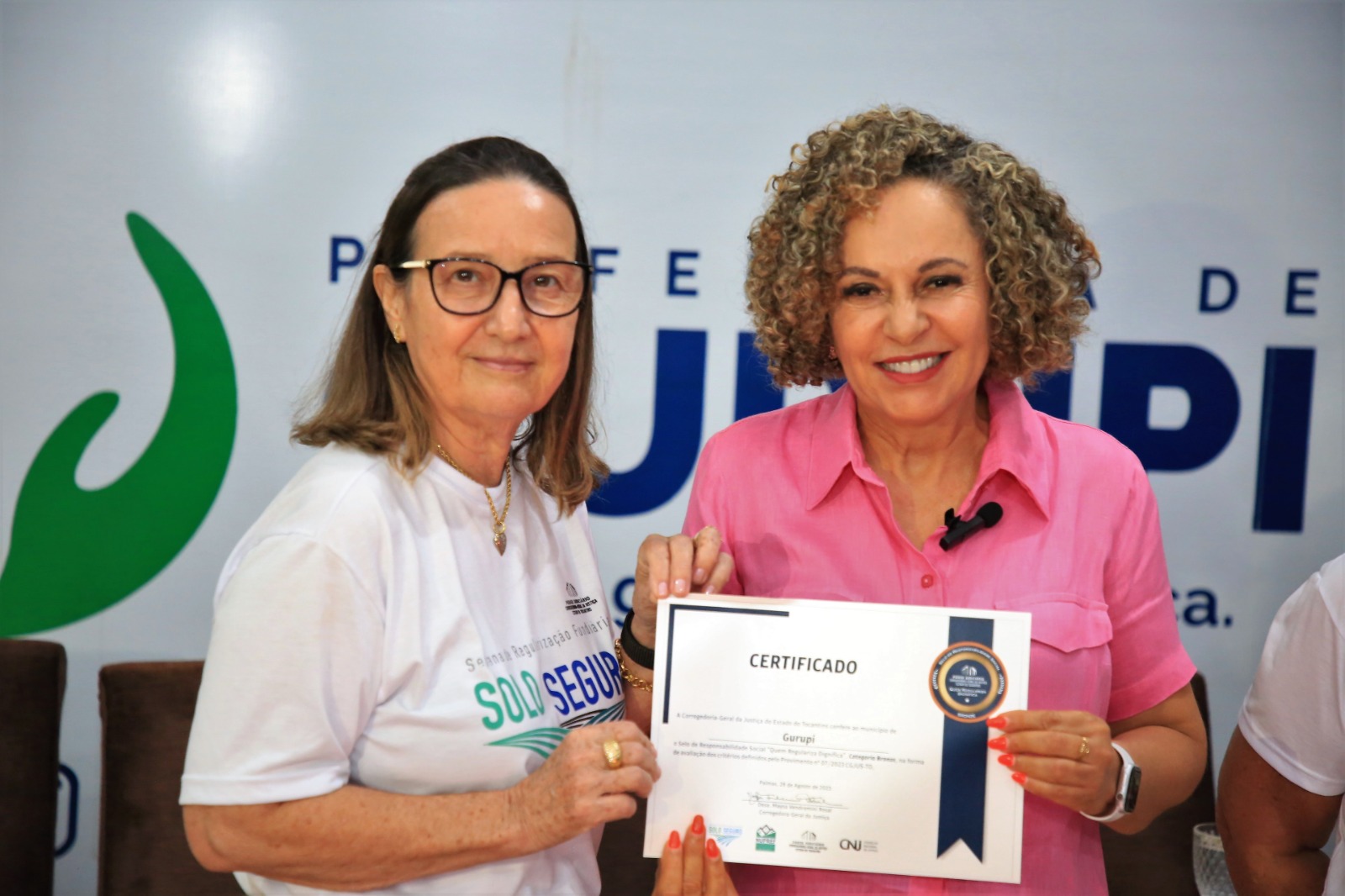No município gurupiense, a entrega do selo foi feita pela corregedora-geral Maysa Vendramini e pelo coordenador do Nupref, Wellington Magalhães, à prefeita Josi Nunes e à oficial do cartório de Registro de Imóveis de Gurupi, Marlene Fernandes Costa.