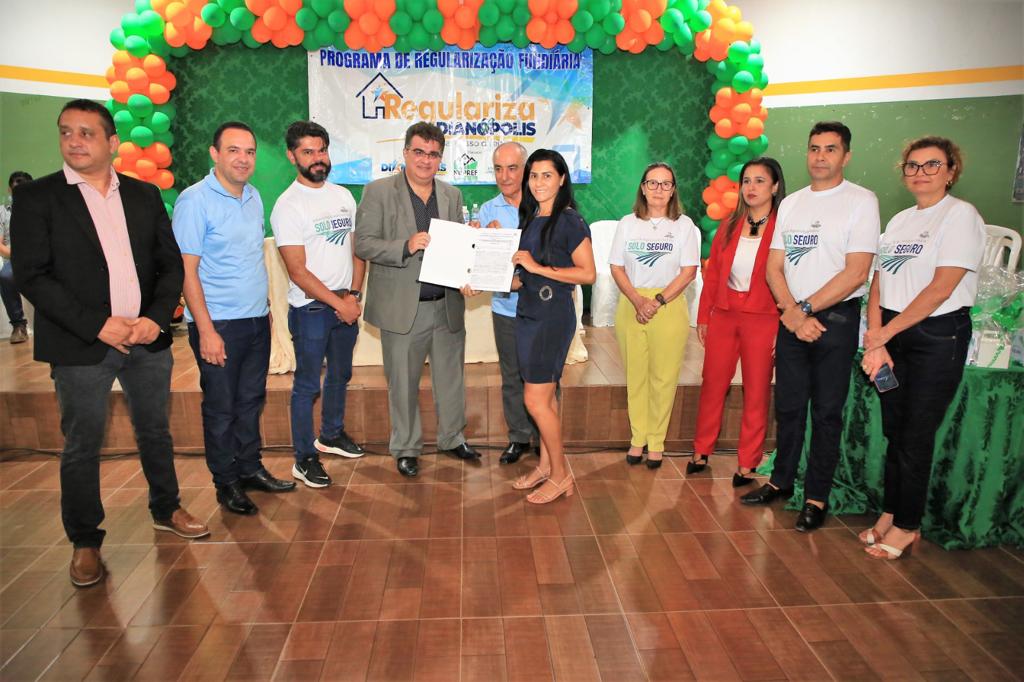 O sonho da conquista do título definitivo do imóvel tornou-se realidade para 316 moradores (as) do setor Nova Cidade II, em Dianópolis. Na noite desta terça-feira (29/8), eles (as) foram beneficiados com o documento que comprova a regularização fundiária das casas onde moram. A solenidade faz parte da programação da 1ª Semana Nacional de Regularização Fundiária - Solo Seguro, que acontece durante esta semana, em todos os estados da Amazônia Legal.
