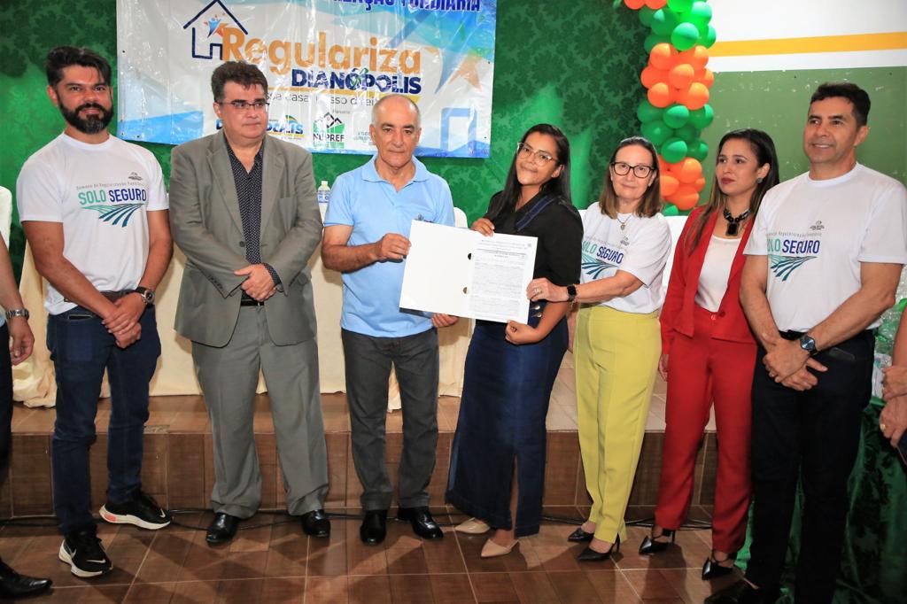 Sobre esse direito, o prefeito de Dianópolis, José Salomão Jacobina Aires, disse que tem buscado garantir o cumprimento desse valor fundamental previsto na Constituição. “A dignidade humana aqui representada exige um lar para as famílias, uma habitação decente... Enfim, um espaço para chamar de seu”, disse. No município já foram entregues 441 escrituras, correspondendo as duas fases do projeto de regularização da cidade.