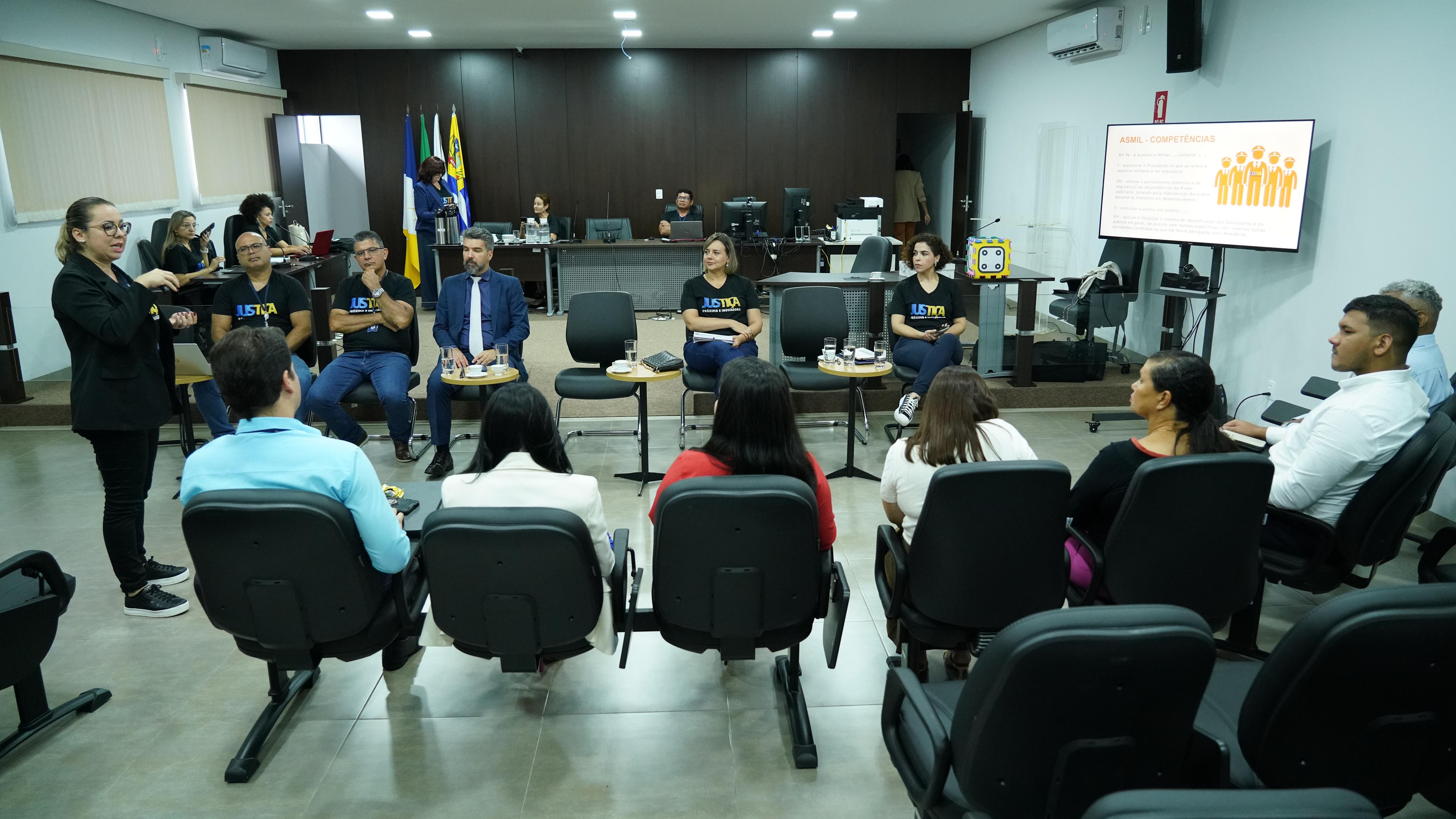 A diretora de Gestão de Pessoas, Márcia Mesquita, ao apresentar a estrutura da diretoria, destacou o trabalho na área do desenvolvimento de pessoas e de valorização e humanização. Dentro do programa de qualidade de vida, a diretora falou sobre as ações com foco na saúde do trabalhador, por meio da interiorização da saúde. Este ano foi escolhida a ginástica laboral como projeto estratégico. Na comarca de Araguacema, no próximo dia 25 de novembro, os servidores vão receber atendimentos de terapias manuais, dando continuidade às ações realizadas em outubro, durante o mês dedicado ao servidor.