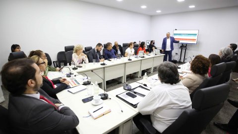 Durante a reunião, o coordenador de Gestão Estratégica, João Ornato Benigno Brito, apresentou as metas a serem cumpridas conforme regulamento da premiação, que é dividida em quatro eixos principais: governança; produtividade; transparência; e dados e tecnologia.
