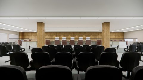 A nova configuração também prevê acesso independente para reuniões entre magistrados e partes, com rampa acessível, guarda-corpo e banheiros adaptados, além de circulação otimizada para evitar cruzamento entre réus e testemunhas. Ainda foram implementadas melhorias que ampliam o acesso às informações e à visualização das provas.