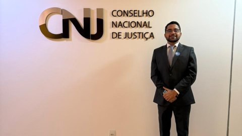 Divulgação A imagem mostra uma sessão realizada no auditório do Conselho Nacional de Justiça (CNJ), em Brasília. No centro do espaço, vê-se a mesa diretora, com autoridades sentadas à frente do plenário, tendo ao fundo o painel com a logomarca do CNJ – Conselho Nacional de Justiça e a bandeira do Brasil.  O ambiente é amplo, moderno e bem iluminado, com iluminação embutida no teto e revestimento em madeira nas paredes laterais. À frente, integrantes da mesa conduzem os trabalhos, enquanto servidores, magistrados e convidados acompanham a sessão sentados no plenário. Algumas pessoas estão em pé, registrando o momento com celulares, o que indica a relevância institucional do evento.