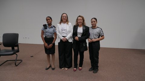 As alunas do 6º ano do Colégio Cívico-Militar Domingos da Cruz Machado, Ágata Patrícia dos Santos e Ananda Vitória Queiroz, ambas com 12 anos, foram selecionadas após destacarem que desejam se tornar juízas durante a dinâmica do quadro de profissões do programa TCE de Olho no Futuro.