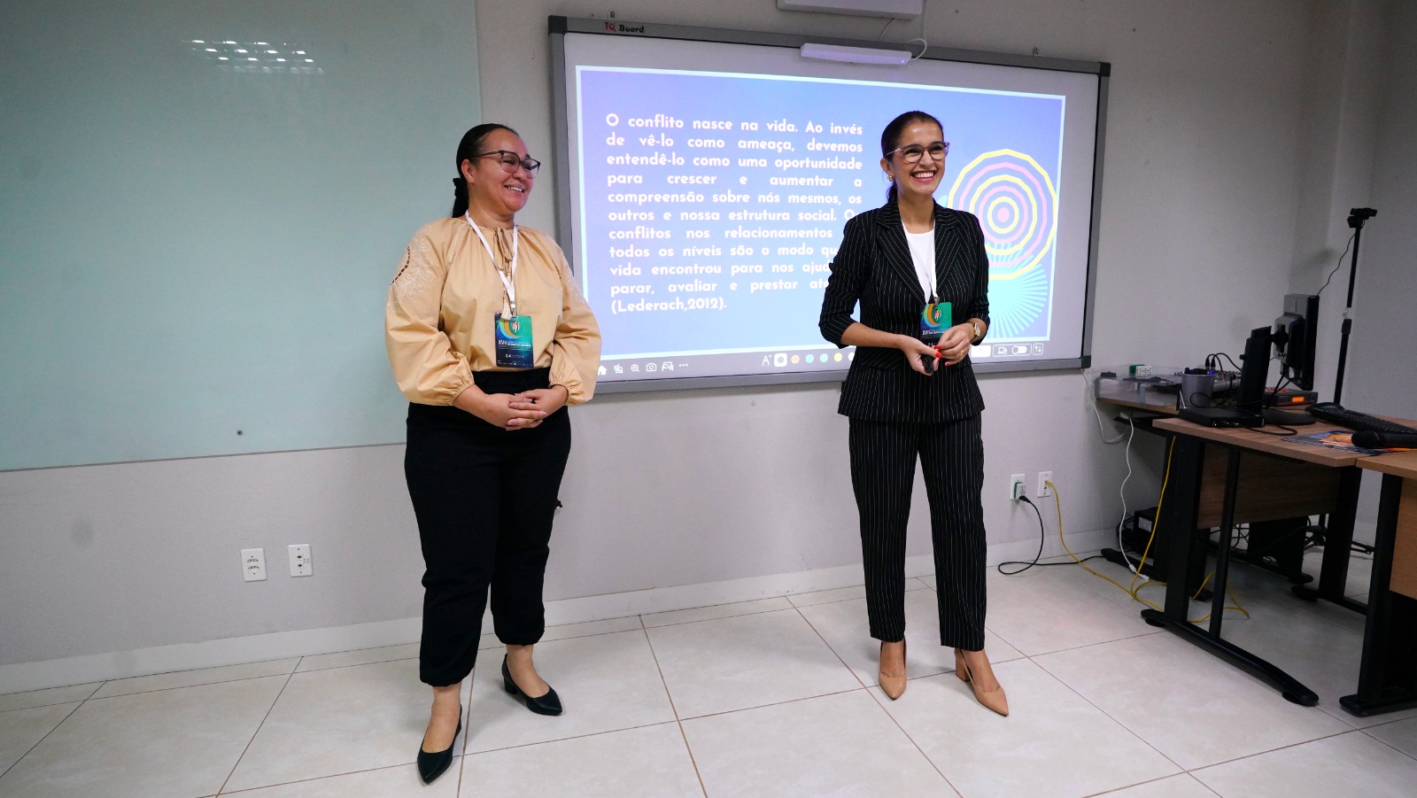 Além disso, a egressa do PPGPJDH Marcela Santa Cruz Melo e a discente Taynã Nunes Quixabeira mostraram como a comunicação pode ser uma ferramenta poderosa para a paz e à resolução de conflitos, no minicurso “Círculo de Construção de Paz como instrumento de comunicação interpessoal e prevenção de conflitos”.