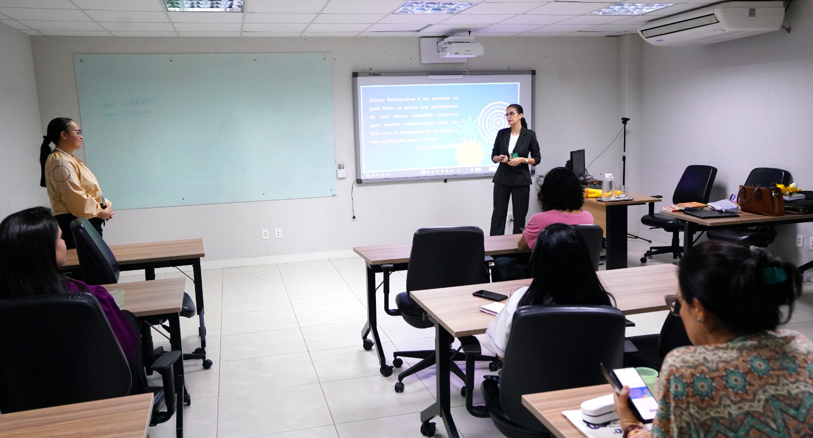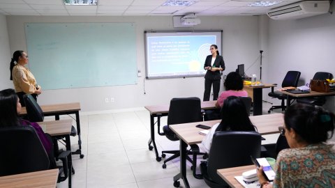 Simultaneamente, as salas de aula da Esmat contaram com a presença de Herivelto Pereira Souza, professor do Departamento de Filosofia da Universidade de Brasília (UnB); Leilyane Masson, professora de Psicopatologia na Universidade Federal de Goiás (UFG); e Tiago Ravanello, professor de Psicologia na Universidade Federal de Mato Grosso do Sul (UFMS). Eles discutiram as intersecções entre “Psicanálise, Autoritarismo e Direitos Humanos”, em um intercâmbio coordenado pelo professor Carlos Mendes Rosa, do curso de Psicologia da Universidade Federal do Tocantins (UFT).
