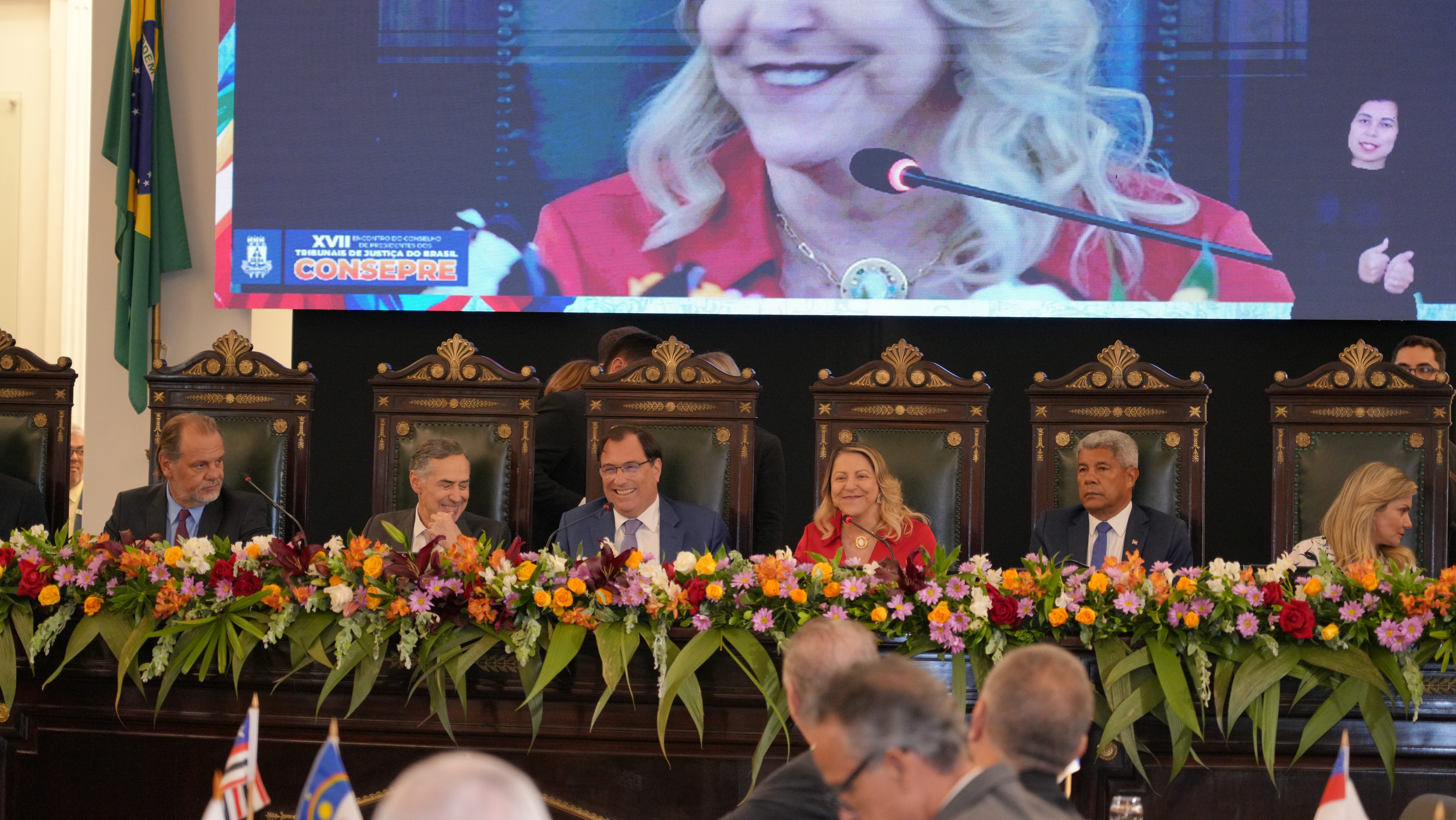 Também foram homenageados com a Medalha de Reconhecimento do Consepre a Desembargadora Nélia Caminha Jorge (TJAM) e os Desembargadores João Benedito da Silva (TJPB) e Luiz Fernando Tomasi Keppen (TJPR), ex-Presidentes do colegiado. Já o Governador da Bahia, Jerônimo Rodrigues, e o Prefeito de Salvador, Bruno Reis, foram agraciados com a Medalha do Mérito Judiciário do Estado da Bahia, honraria concedida pelo TJBA a personalidades por seus relevantes serviços prestados ao Poder Judiciário.