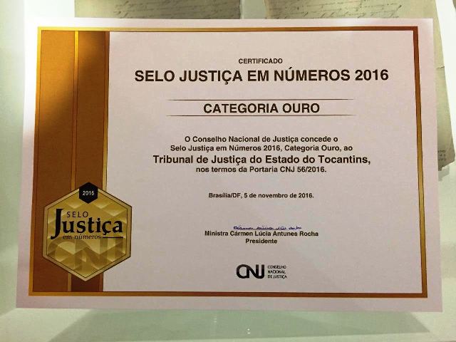 Tribunal de Justiça do Tocantins conquista Selo Ouro do CNJ