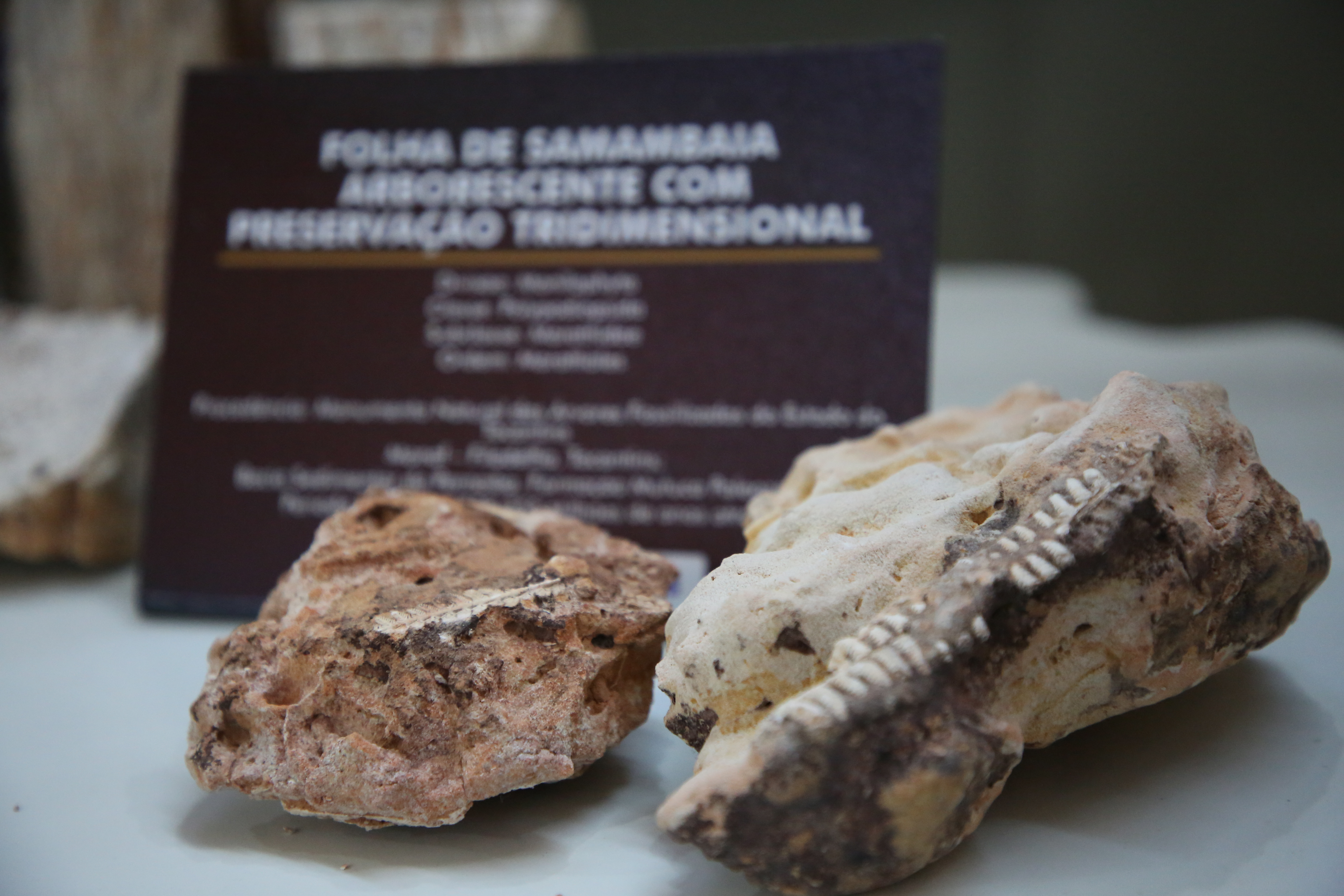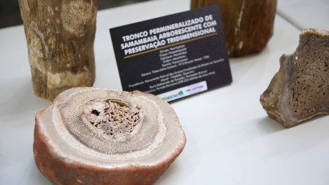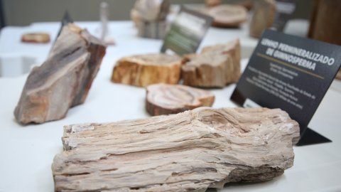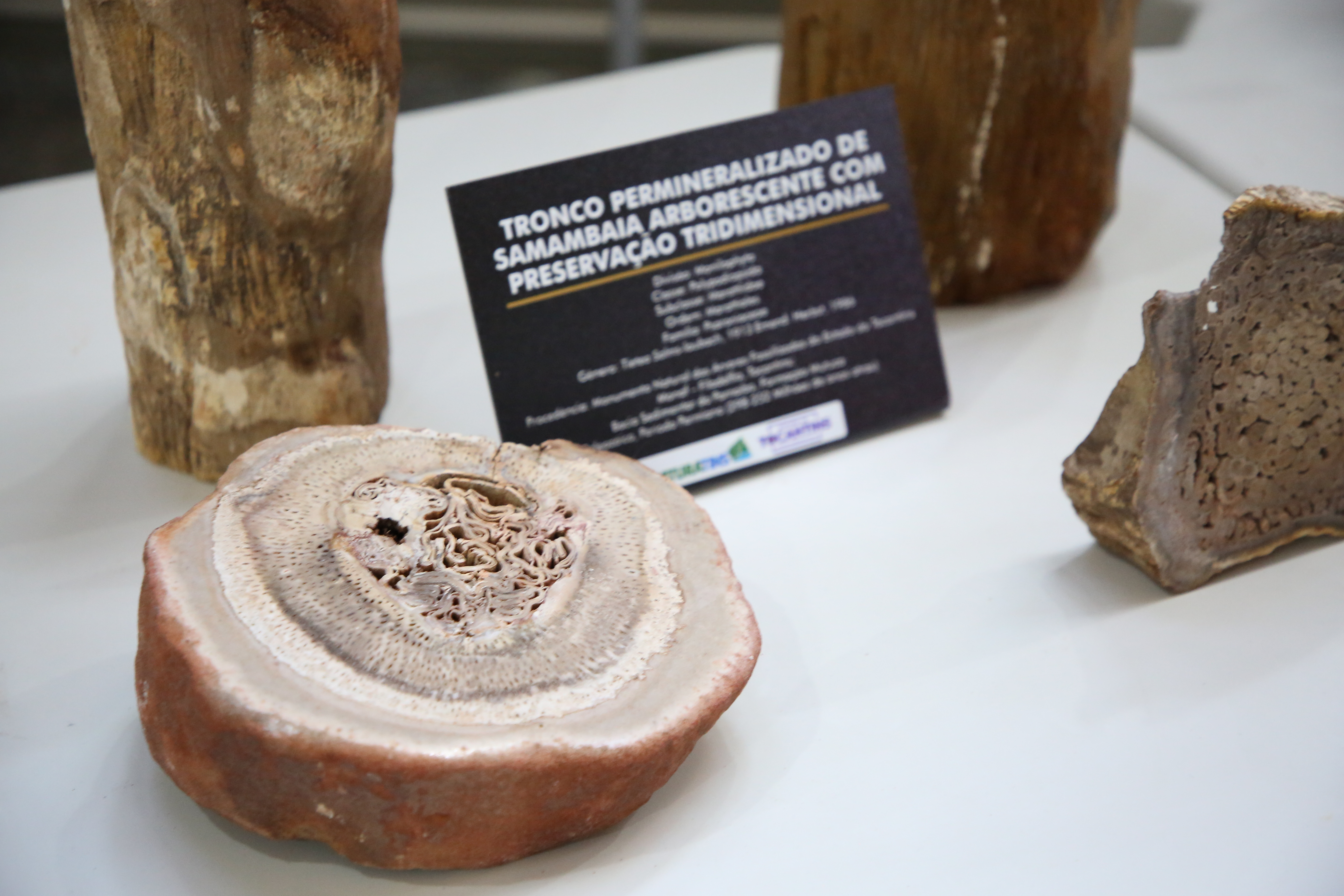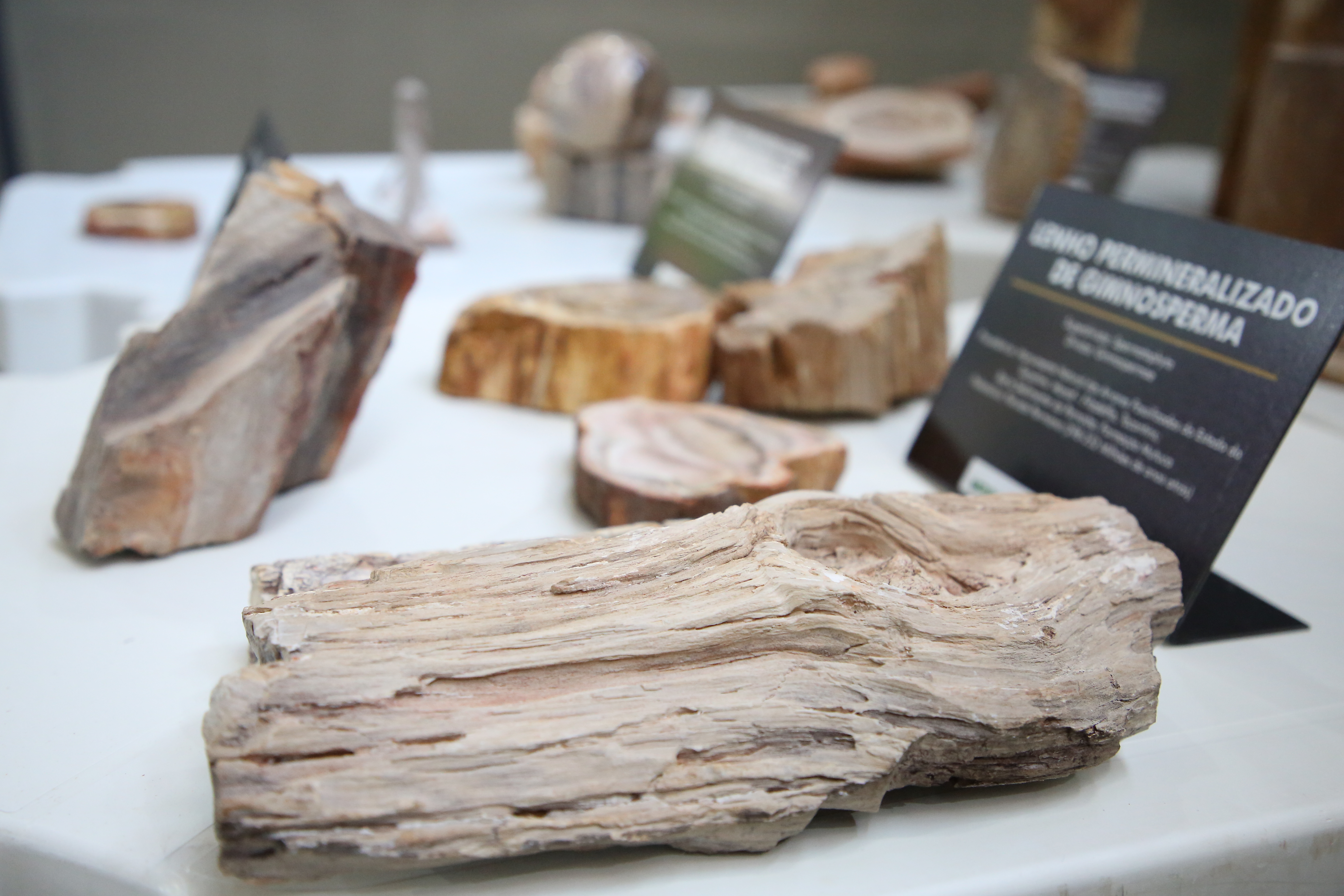 Elias Oliveira Um dos elementos expostos na exposição de árvores fossilizadas