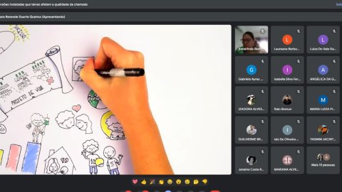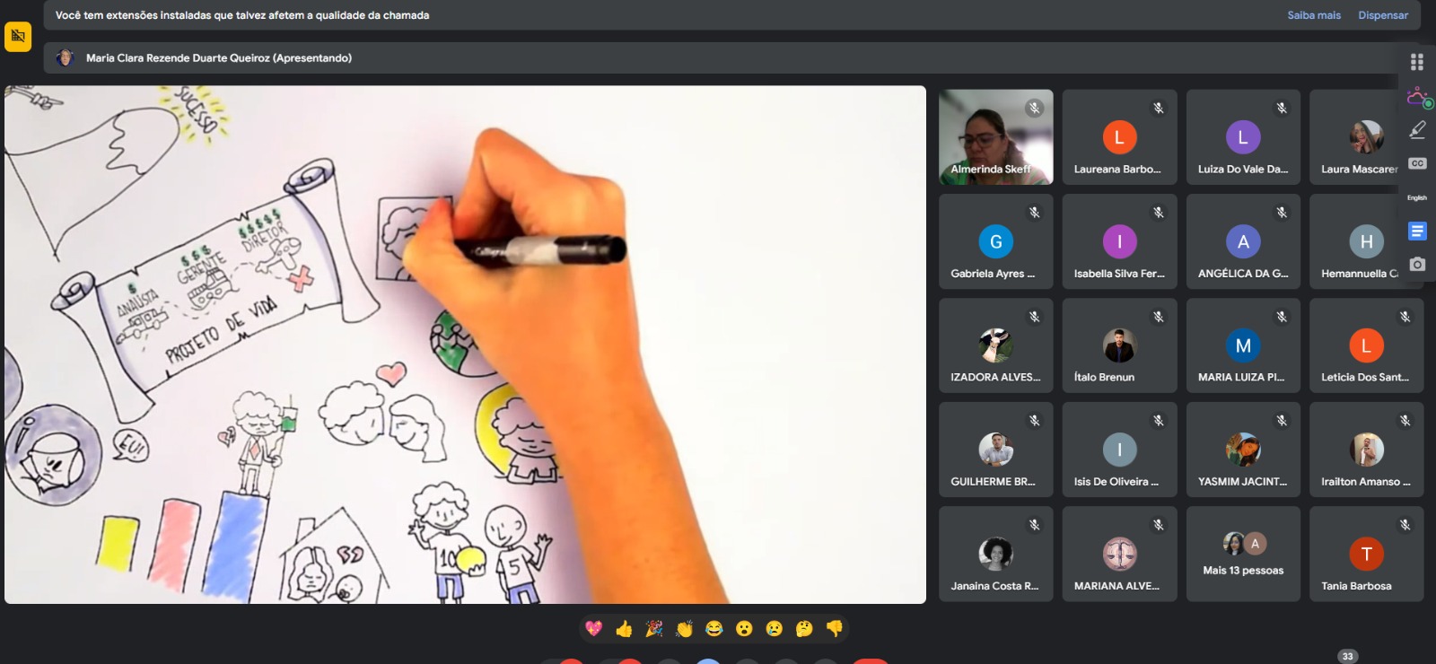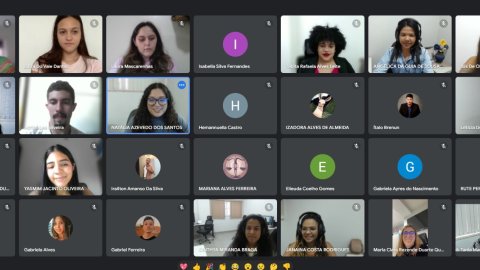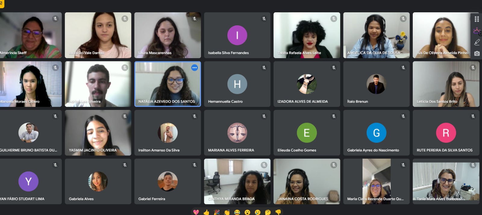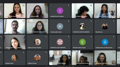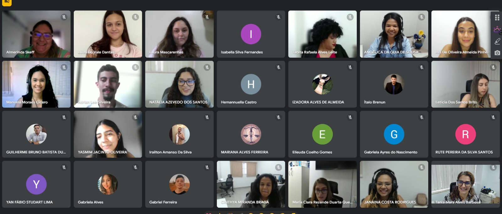 Fotografia colorida onde trinta e seis estagiários estão em uma transmissão no meet