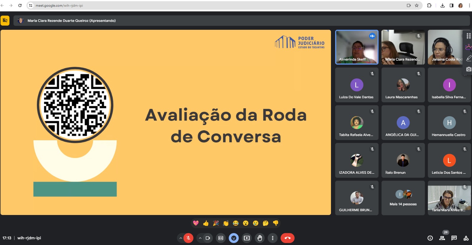 O Poder Judiciário do Tocantins (PJTO), por meio da Diretoria de Gestão de Pessoas (Digep), realizou nesta quinta-feira (11/4), das 13h30 às 17h30  a primeira roda de conversa do projeto Justiça em Diálogo, com o tema “Qualidade de vida e Saúde mental de Estagiários(as)”.