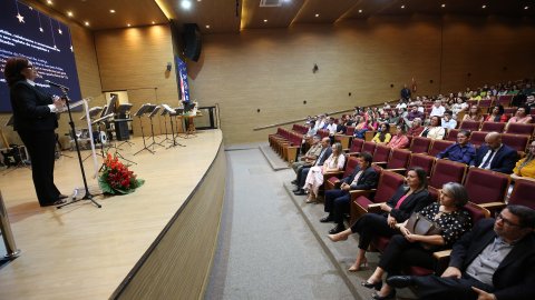 “A palavra realmente é gratidão. Gratidão a Deus por estarmos aqui hoje, por assumirmos essa presidência que conta com a contribuição de cada um de vocês. E a nossa gratidão é imensa”, disse a presidente lembrando ainda que felicidade não se mede por aquilo que se tem, mas por aquilo que conseguimos dar.