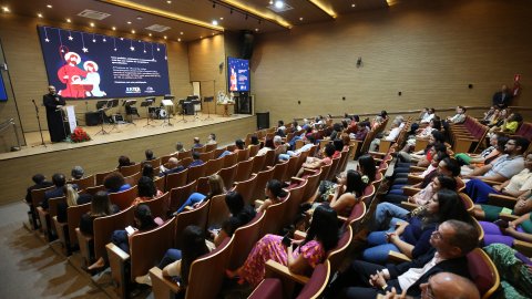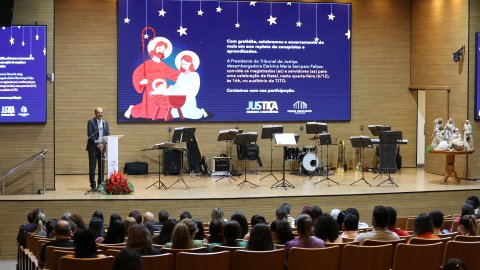 Generosidade, felicidade e gratidão foram as palavras que marcaram a celebração de Natal realizada, nesta quarta-feira (6/12), no auditório do Tribunal de Justiça do Tocantins (TJTO), com a presença da presidente, desembargadora Etelvina Maria Sampaio Felipe, do padre Eduardo Zanom e do pastor Gizelson Moura e servidores e servidoras.