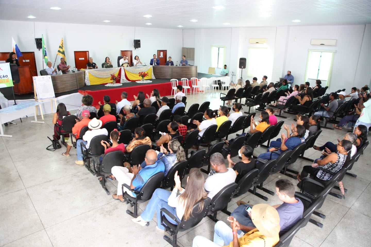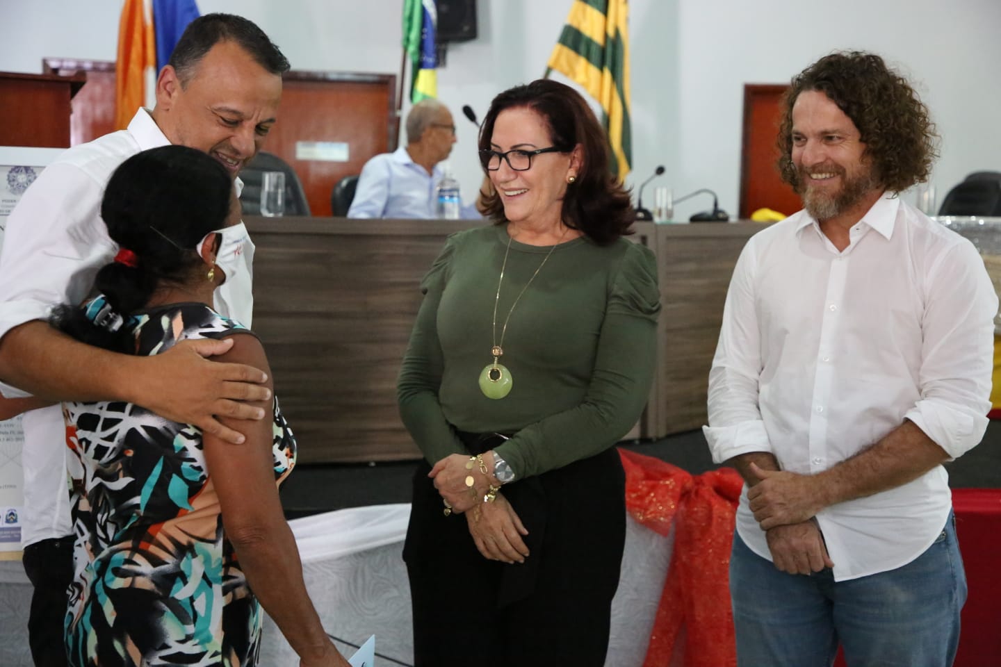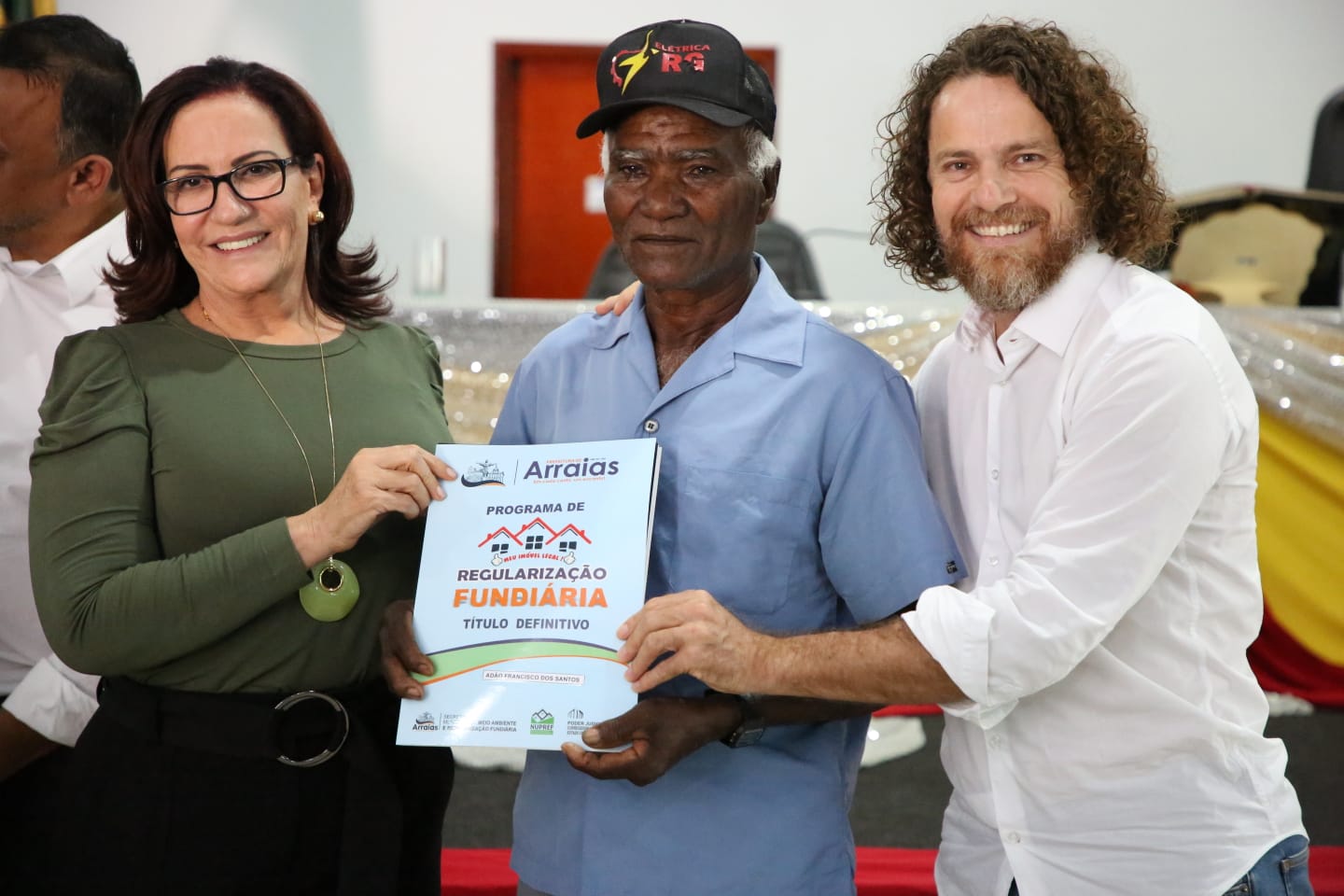 Entre outras autoridades, participaram da solenidade a corregedora-geral da Justiça do Estado do Tocantins, a desembargadora Etelvina Maria Sampaio; o prefeito de Arraias, Herman Gomes de Almeida; Aleandro Lacerda, presidente da Tocantins Parcerias, que representou o governador do Estado do Tocantins, Wanderlei Barbosa; o juiz coordenador no Núcleo de Prevenção e Regularização Fundiária, Océlio Nobre; o defensor público da Comarca de Arraias Édson Perilo; João Paulo Leandro de Souza Araujo, representante do promotor de Justiça da Comarca de Arraias João Neumann Marinho de Nóbrega; o presidente da Câmara Municipal, Ozaildo Moura; o titular do Cartório de Registro de Imóveis de Arraias, Carlos Augusto Nunes Cordeiro; e Marcelo Mendes Borges, representando a empresa Mendes e Borges Engenharia, que executou o projeto.