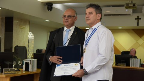 A honraria foi entregue pelo presidente do  Tribunal Regional Eleitoral do Tocantins (TRE-TO), desembargador Helvécio Brito de Maia Neto,  na sessão plenária na manhã desta segunda-feira
