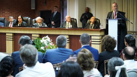 Prestigiando o evento, o governador do Estado, Wanderlei Barbosa, destacou a relevância do Poder Judiciário para o Estado do Tocantins e a importância da parceria entre os Poderes. “Vemos uma Casa que cuida da segurança jurídica com uma gestão de cuidado com toda a população do Estado. Se Deus permitir, daremos continuidade a projetos parceiros, a exemplo da entrega do título a uma família, algo tão importante. Que esta gestão possa continuar com a mesma isenção, eficiência e cuidado que sempre tivemos. Desejo muito sucesso a desembargadora Maysa, pois sei que é uma Casa de homens e mulheres valorosos e que sempre trabalhamos juntos, Executivo e Judiciário, com o objetivo maior de atender a população tocantinense”, disse.