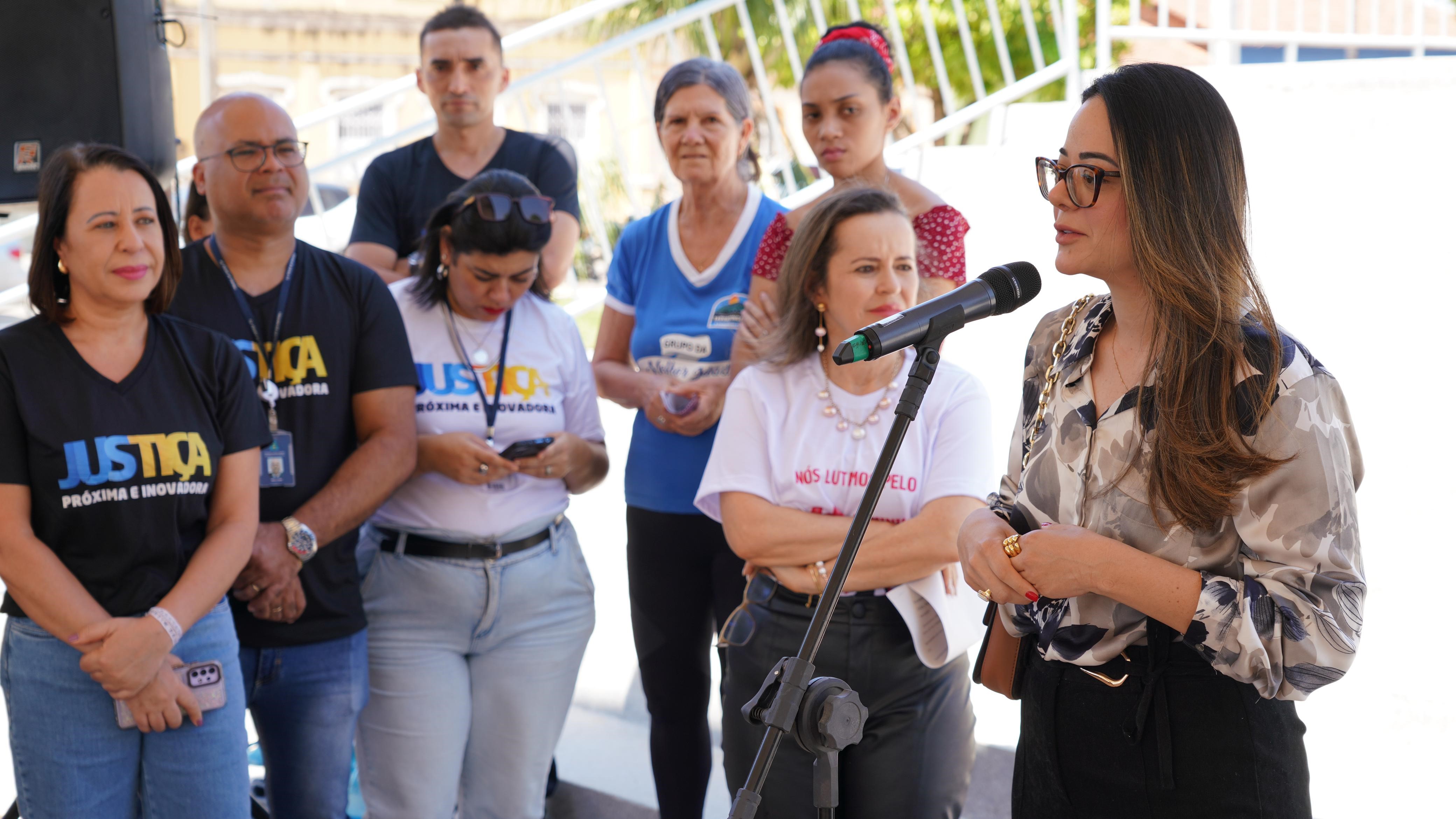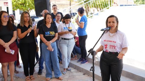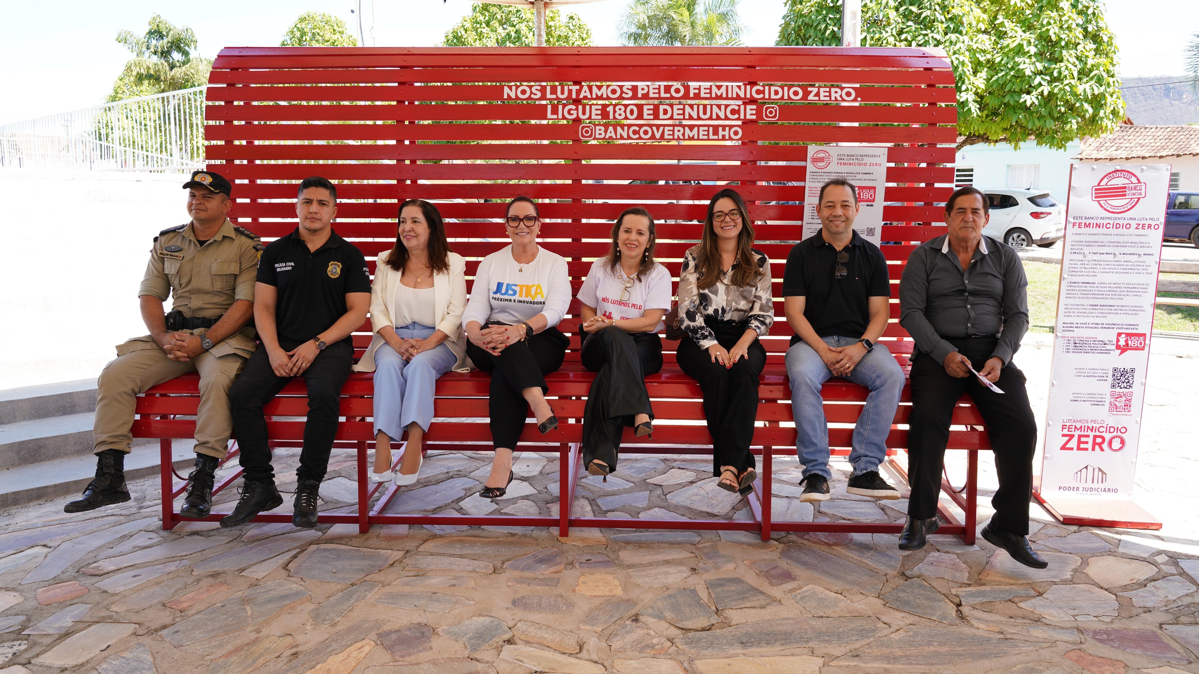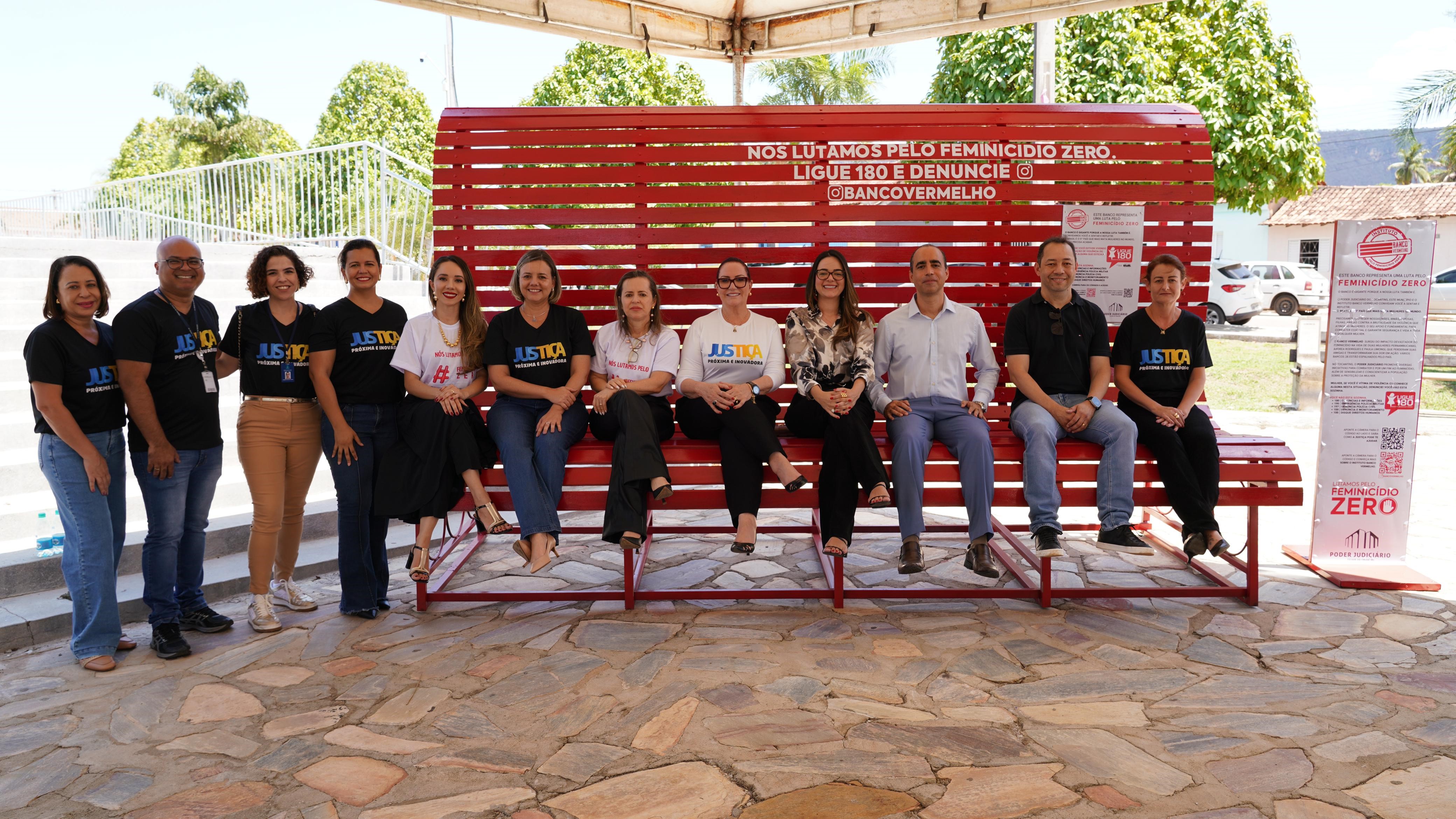 "O banco é grande porque nossa luta é maior ainda e a rede fortalecida, como vemos aqui, nos permite acreditar que um dia chegaremos à taxa zero, objetivo de todos(as)”, disse a presidente do Tribunal de Justiça do Tocantins (TJTO), desembargadora Etelvina Maria Sampaio Felipe, ao fazer a entrega do Banco Vermelho nesta quinta-feira (24/10), no município de Taguatinga, na Praça da Igreja da Matriz.