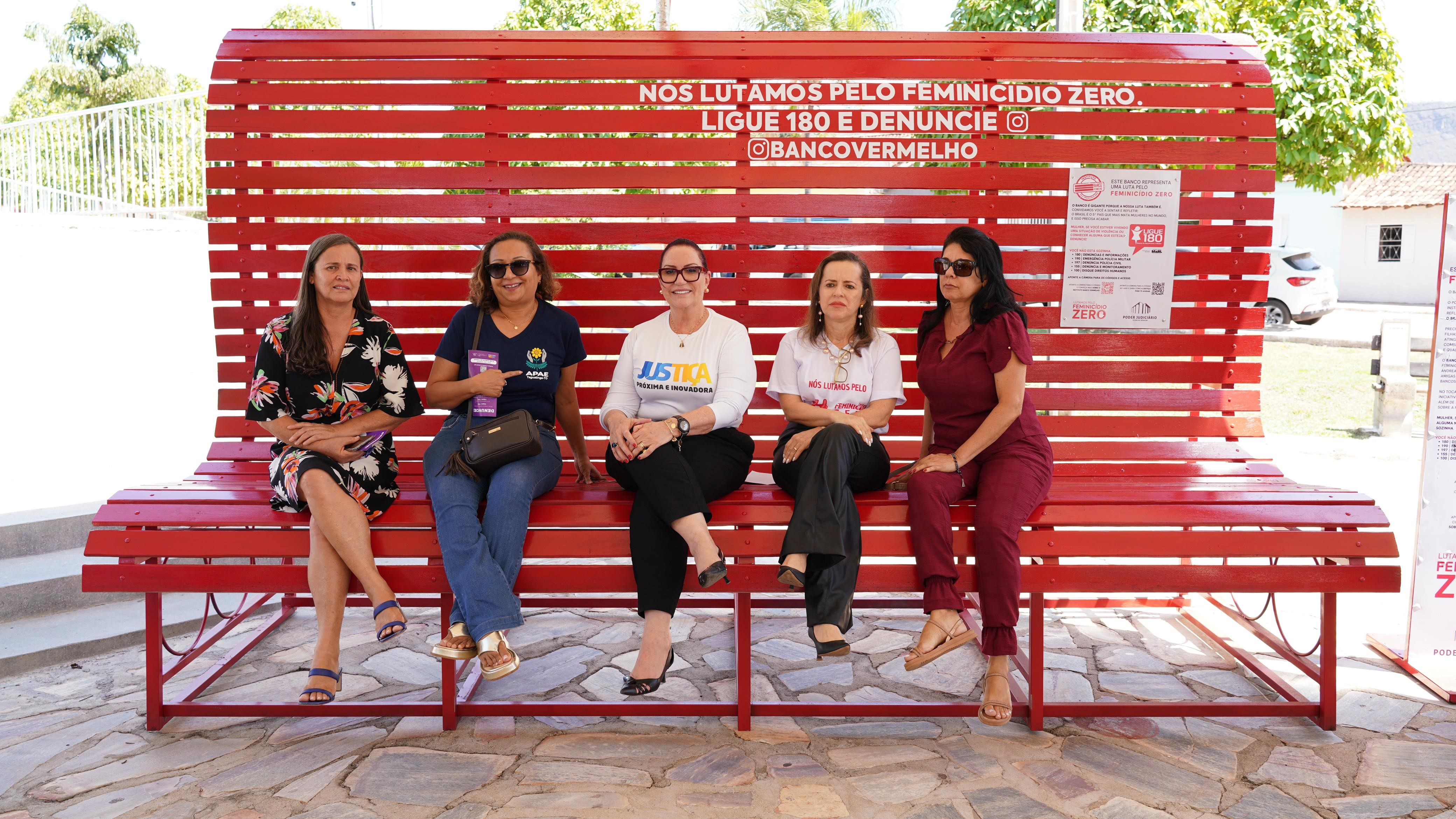 Uma iniciativa do Instituto Banco Vermelho (IBV), a ação prevê a instalação de um banco vermelho gigante - de 4 metros de comprimento por 1.80 de altura - por meio da Coordenadoria Estadual da Mulher em Situação de Violência Doméstica e Familiar (Cevid). O objetivo é sensibilizar a população sobre a importância do enfrentamento à violência contra a mulher e do combate ao feminicídio. A ideia nasceu da experiência pessoal de duas mulheres de Recife (PE), a publicitária e ativista Andrea Rodrigues e a executiva de marketing Paula Limongi, que perderam amigas, assassinadas por seus companheiros.