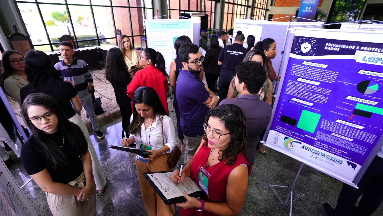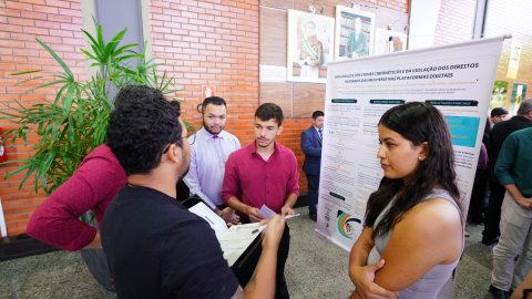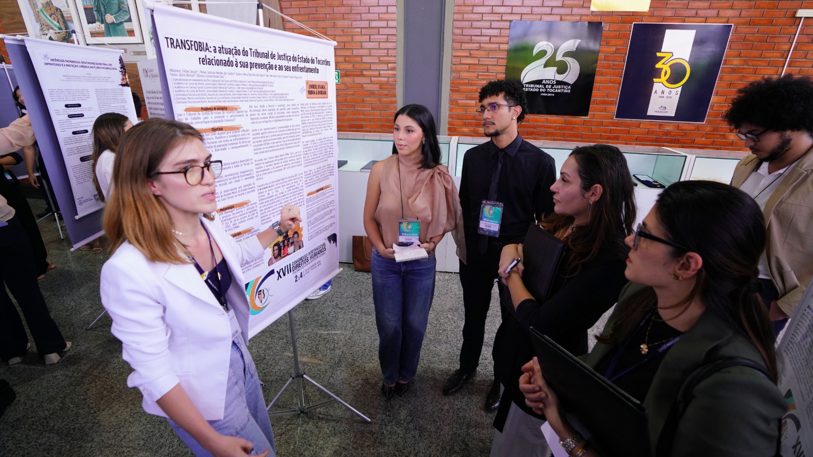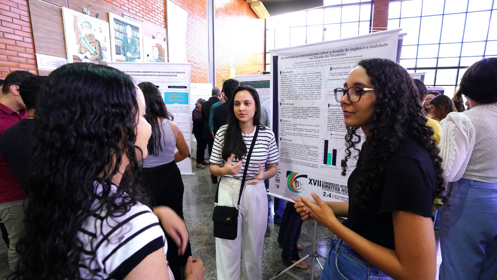 Paralela à programação de palestras, minicursos e painéis temáticos do XVII Congresso Internacional em Direitos Humanos, iniciado nesta quarta-feira (2/10) no auditório do Tribunal de Justiça do Tocantins (TJTO) com o tema “O Estado de Coisas Inconstitucionais”, os(as) participantes podem conferir, ainda, uma exposição de banners de alunos(as) dos cursos de graduação da Universidade Federal do Tocantins (UFT), no hall de entrada do Tribunal. Os banners serão avaliados e o resultado será divulgado na sexta-feira (4/10). O evento é uma iniciativa do Poder Judiciário do Tocantins (PJTO), por meio da Escola Superior da Magistratura Tocantinense (Esmat).