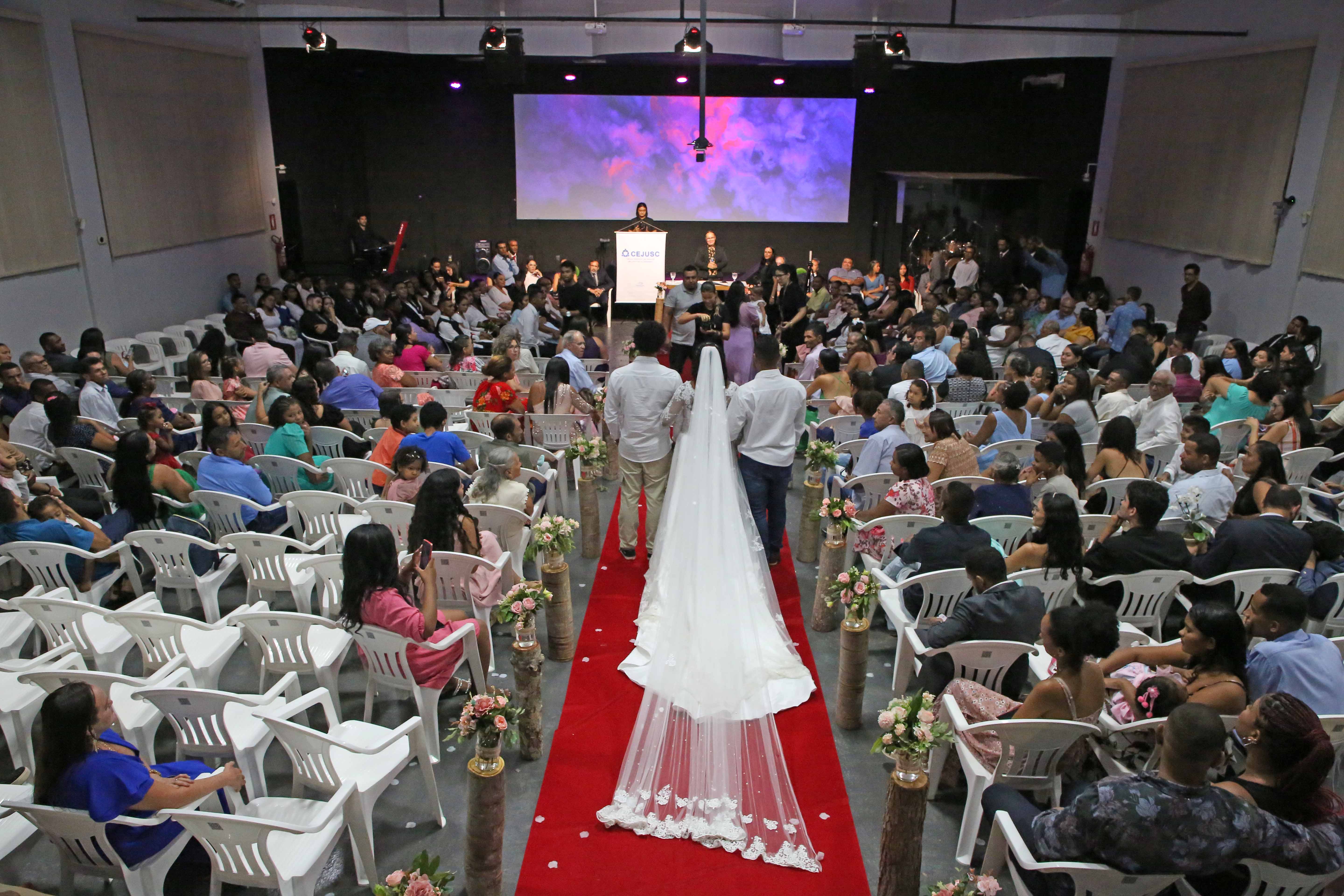 Palavras de noivos ansiosos que realizaram um grande sonho, como outros 48 casais que participaram do Casamento Comunitário realizado no último sábado (28/10) pelo Poder Judiciário, por meio do Centro Judiciário de Solução de Conflitos e Cidadania (Cejusc) de Araguaína, com o projeto “Cejusc Para Todos”.