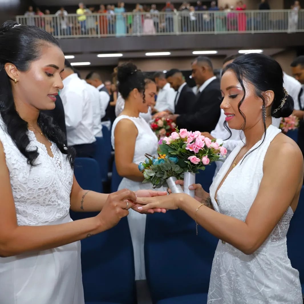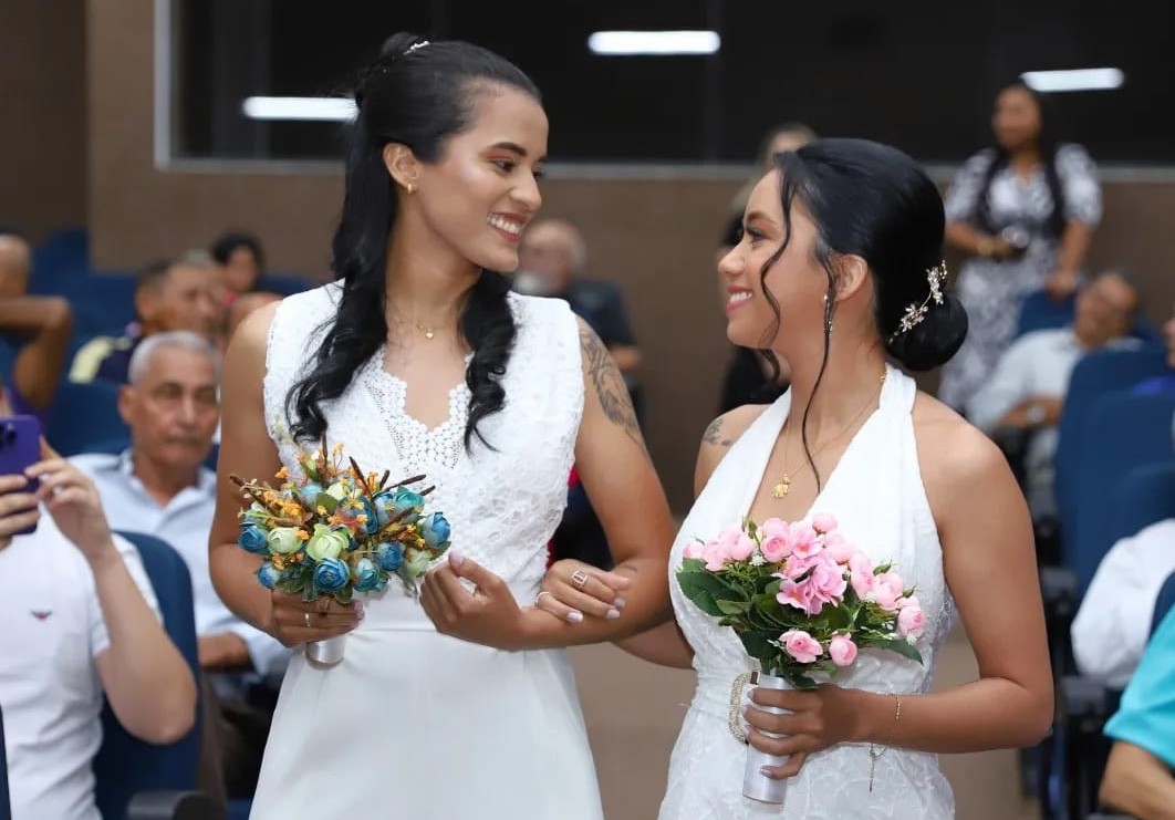 Direito garantido também ao casal Brenda Rodrigues Alencar e Vanessa Alves Oliveira. Que abriram caminhos para outras pessoas que querem oficializar união homoafetiva. Aos 27 anos e com três anos de relacionamento, elas não se intimidaram ao mostrar o amor que sentem e ultrapassar as barreiras que muitas vezes são impostas. Foi o primeiro casal homoafetivo de um Casamento Comunitário realizado pelo Cejusc de Araguaína.