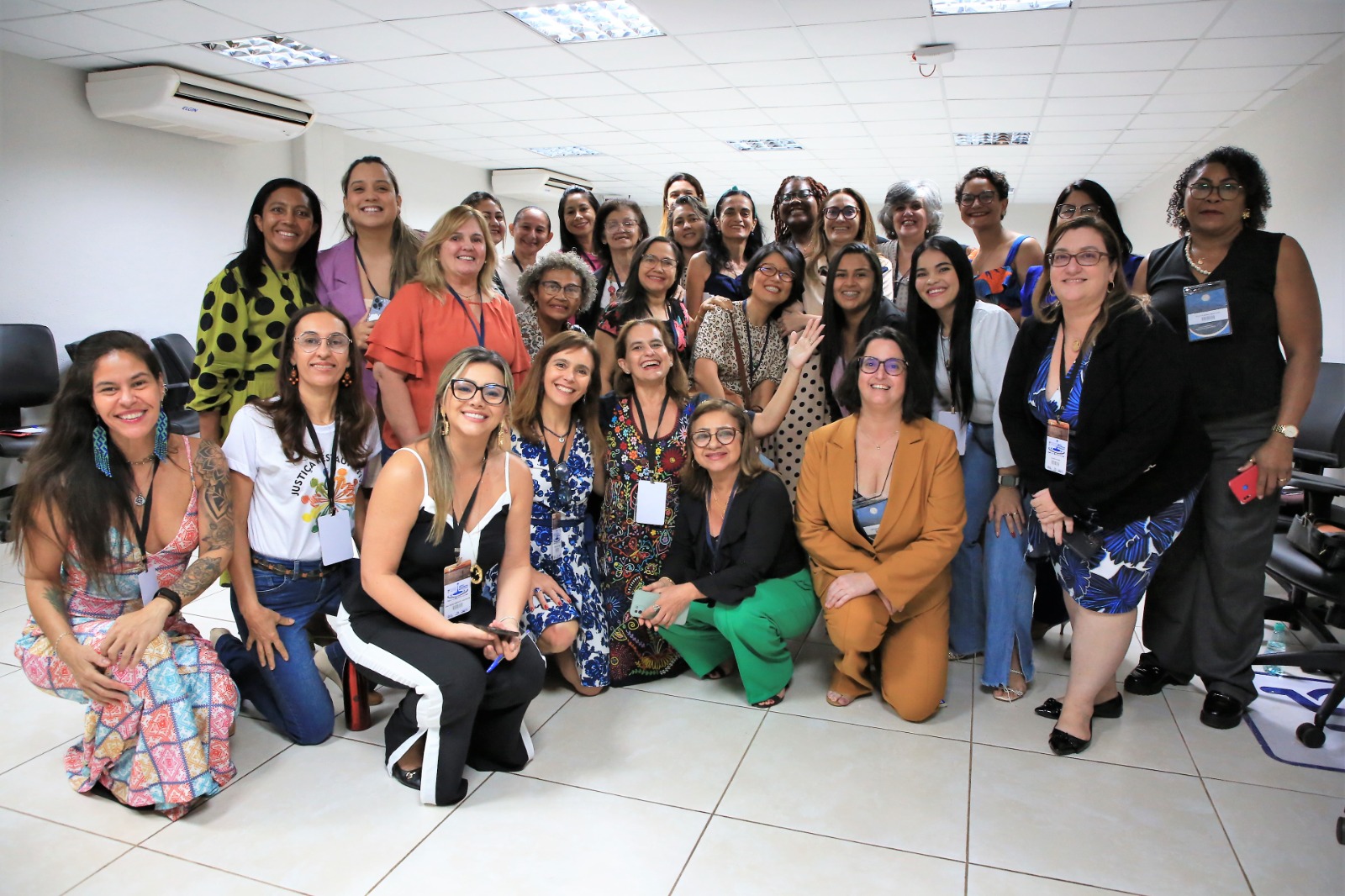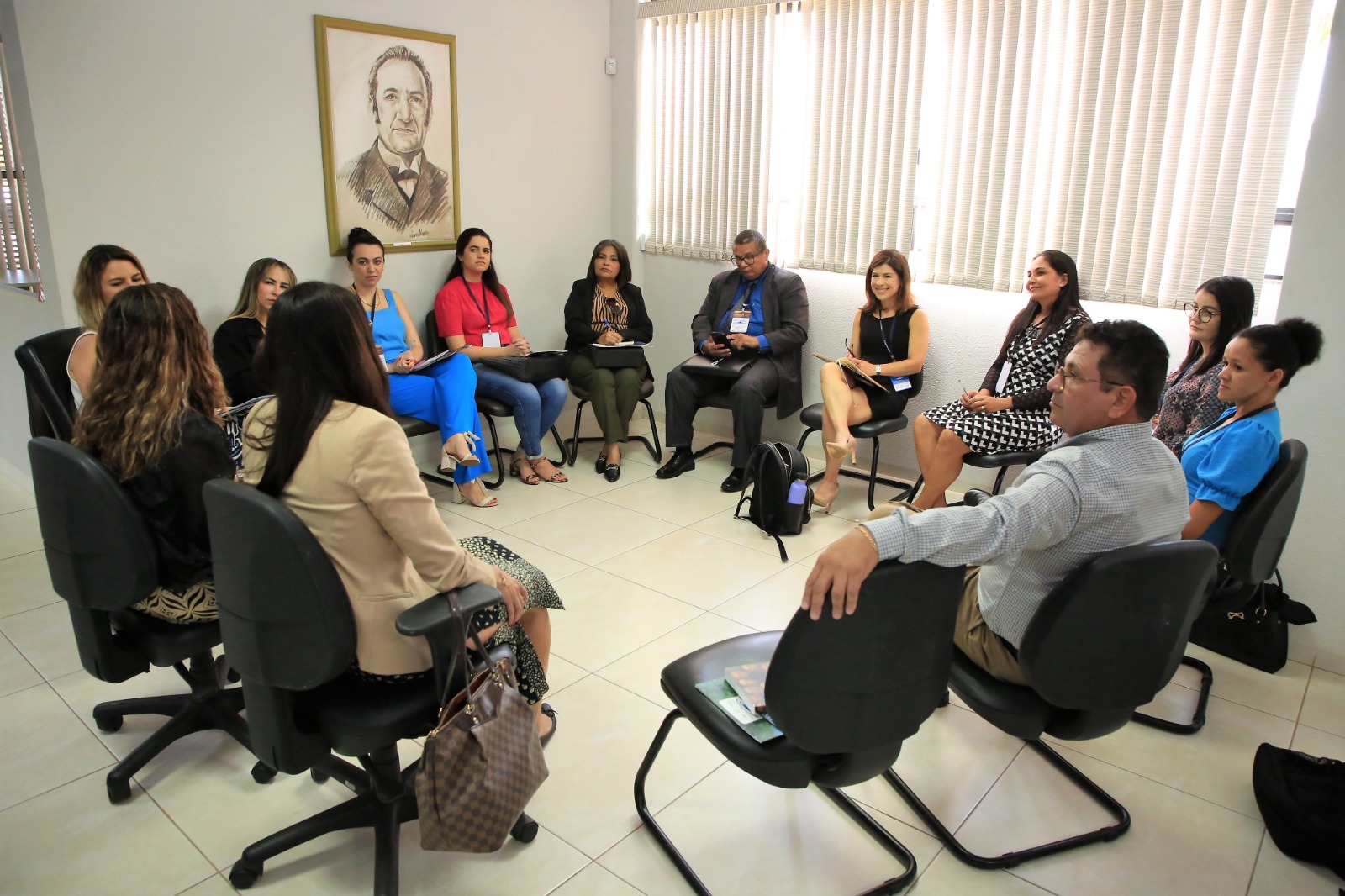 Hodirley Canguçu/Esmat Imagem mostram várias pessoas sentadas em um círculo dentro de uma sala da Esmat