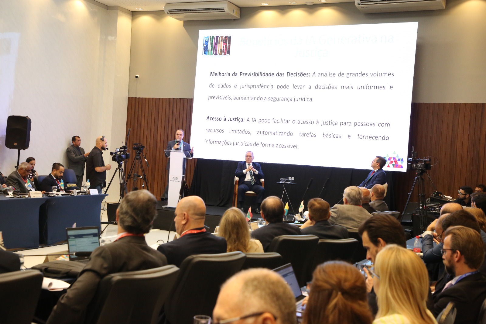 Na manhã desta quinta-feira (25/4), o desembargador Marco Villas Boas apresentou aos Corregedores-Gerais de Justiça os resultados do Projeto Hórus, desenvolvido no curso e nas oficinas de trabalho com foco na utilização de IA Generativa no Poder Judiciário, que vem acontecendo nos últimos meses, na Escola Superior da Magistratura Tocantinense (Esmat), em cooperação com a Universidade de São Paulo -USP, e com a Startup Taqui, que possibilita a utilização da inteligência artificial para processar grande massa de informações.