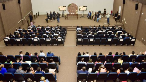 Foram duas cerimônias realizadas no auditório do Fórum de Araguaína, selando a união de 45 casais na parte da manhã e 45 à tarde. Foto: Divulgação