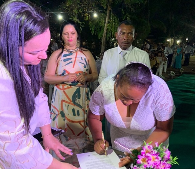Na cerimônia, presidida pelo juiz de paz José Sobrinho Pereira, dezessete casais celebraram sua união. A solenidade registrou a união de Gabriella Oliveira Mendes e Rafaela Campos Santana, primeiro casal homoafetivo atendimento pelo projeto em Luzimangues.
