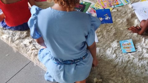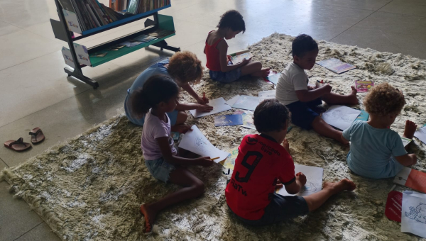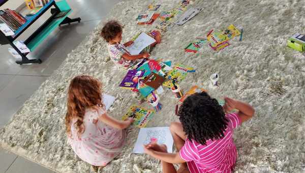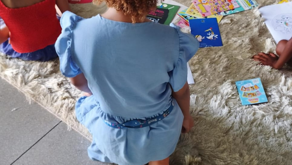 O ambiente, organizado com o Cantinho da Leitura, com o espaço do tapete, livros e atividades lúdicas, proporcionou tranquilidade para pais e responsáveis, enquanto incentivava o contato das crianças com a leitura.