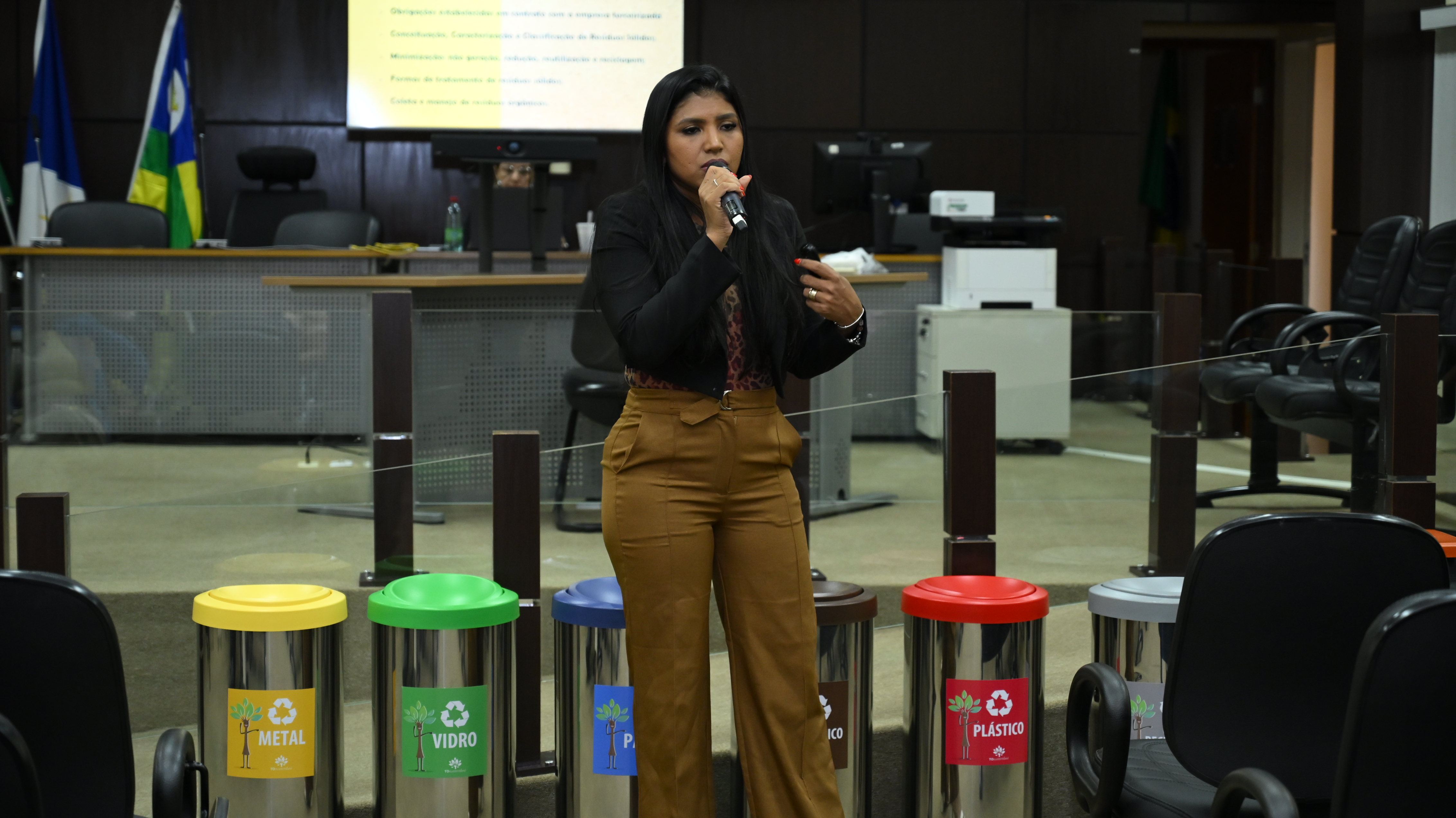 Durante o Workshop Coleta Seletiva Solidária, a coordenadora da Cogersa, Luciene Dantas, apresentou o mapa estratégico do judiciário tocantinense.