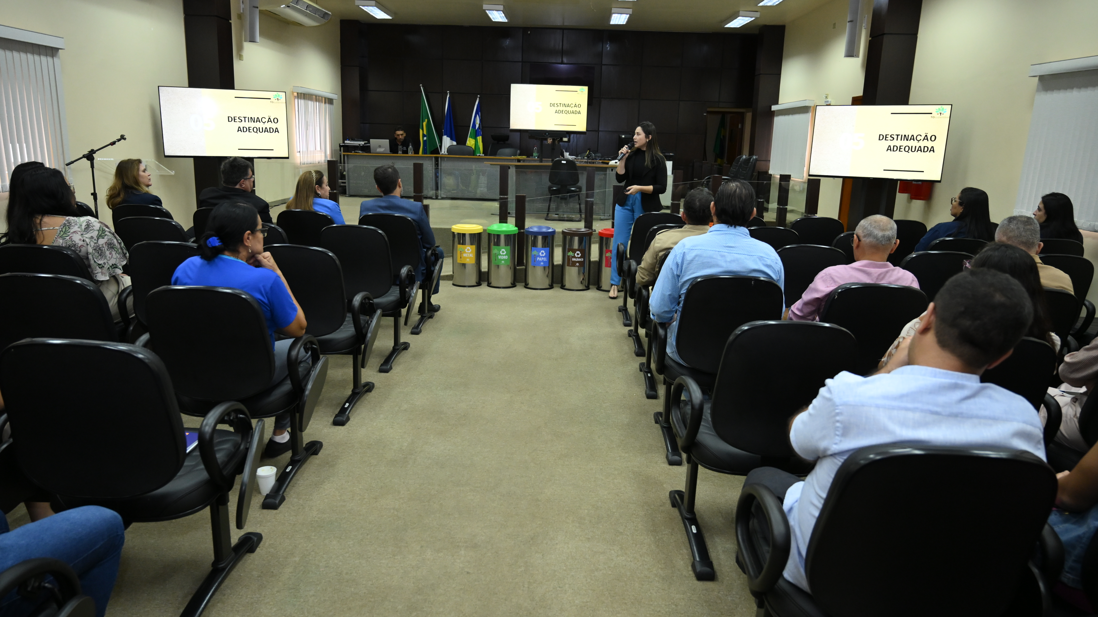 Separar os resíduos sólidos para destiná-los à reciclagem agora faz parte da rotina de magistrados, servidores(as) e estagiários(as) da Comarca de Dianópolis, no Sudeste do Tocantins. O Tribunal de Justiça do Tocantins (TJTO), por meio da Comissão Gestora do Plano de Logística Sustentável (PLS), em parceria com a Coordenadoria de Gestão Socioambiental e de Responsabilidade Social (Cogersa) e a Diretoria do Fórum da cidade, lançou nesta segunda-feira (24/2) o Projeto Coleta Seletiva Solidária no município.