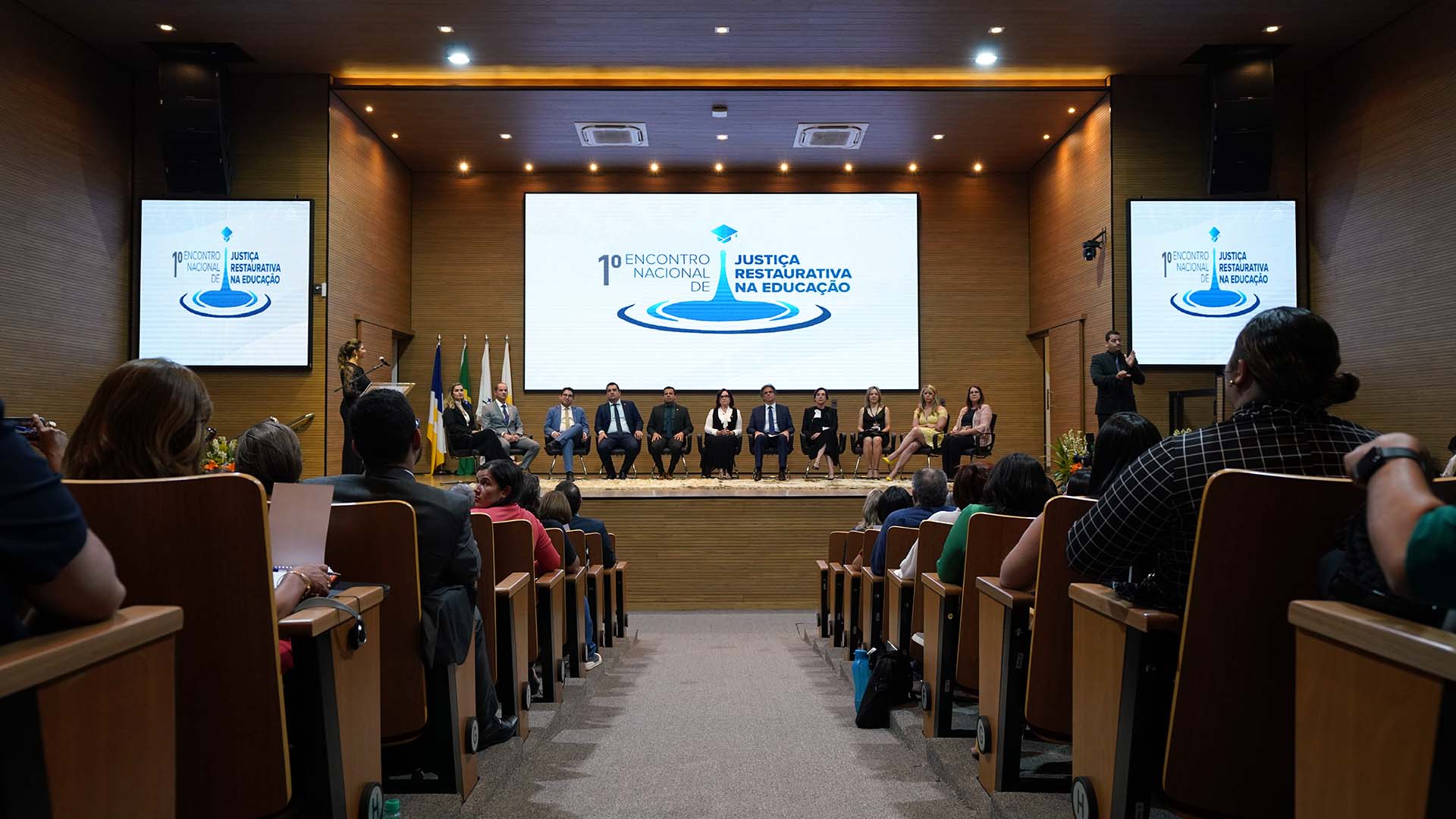 Aberto oficialmente na tarde desta quarta-feira (23/8), o 1º Encontro Nacional de Justiça Restaurativa na Educação discute nesta semana, em Palmas, as melhores práticas e estratégias para o desenvolvimento da justiça restaurativa nas escolas, com uma abordagem inovadora. A solenidade de abertura contou com a presença de diversas autoridades, magistrados (as) e educadores (as) e foi realizada no auditório do Tribunal de Justiça do Tocantins (TJTO), onde a programação segue até sexta-feira (25/8).