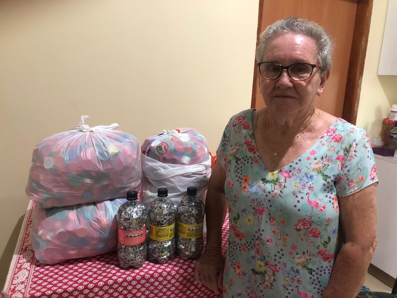 A exemplo da Dona Maria Neusa de Lacerda Oliveira, aposentada voluntária, responsável pela doação de mais 40% dos 36,8 kg de lacres e tampinhas e lacres arrecadados na primeira edição realizada em 2023.