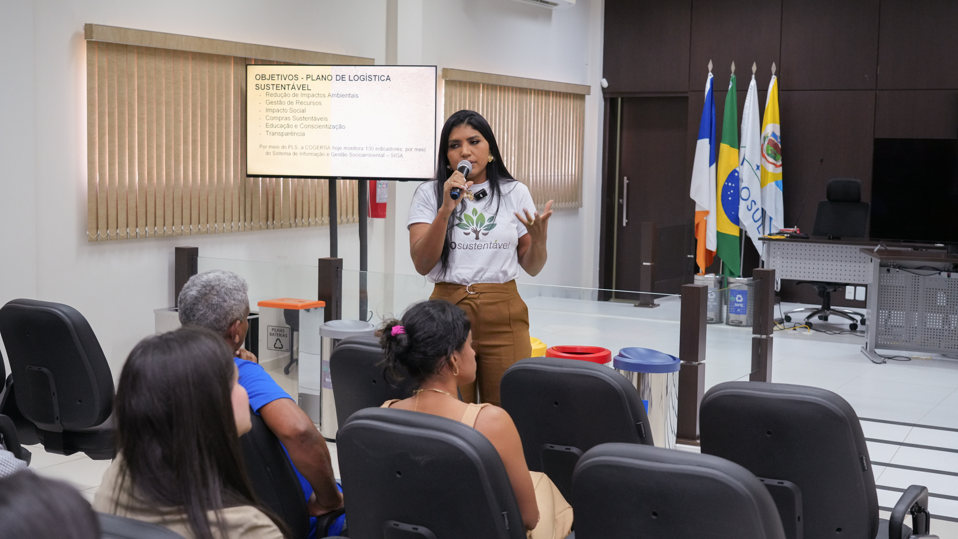 Durante o lançamento, servidores(as) participaram de um curso sobre coleta seletiva, ministrado pelas engenheiras ambientais da Cogersa, Cinthia Azevedo e Welica Rodrigues. A capacitação abordou desde os princípios da separação de resíduos até a destinação correta de materiais e bens inservíveis, com foco na melhoria dos indicadores do Índice de Desempenho da Sustentabilidade (IDS) no Judiciário.